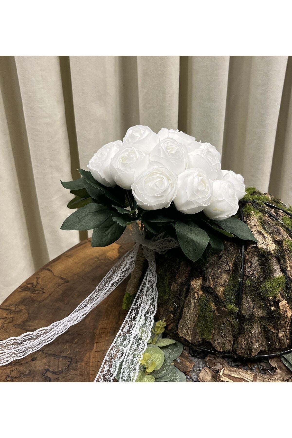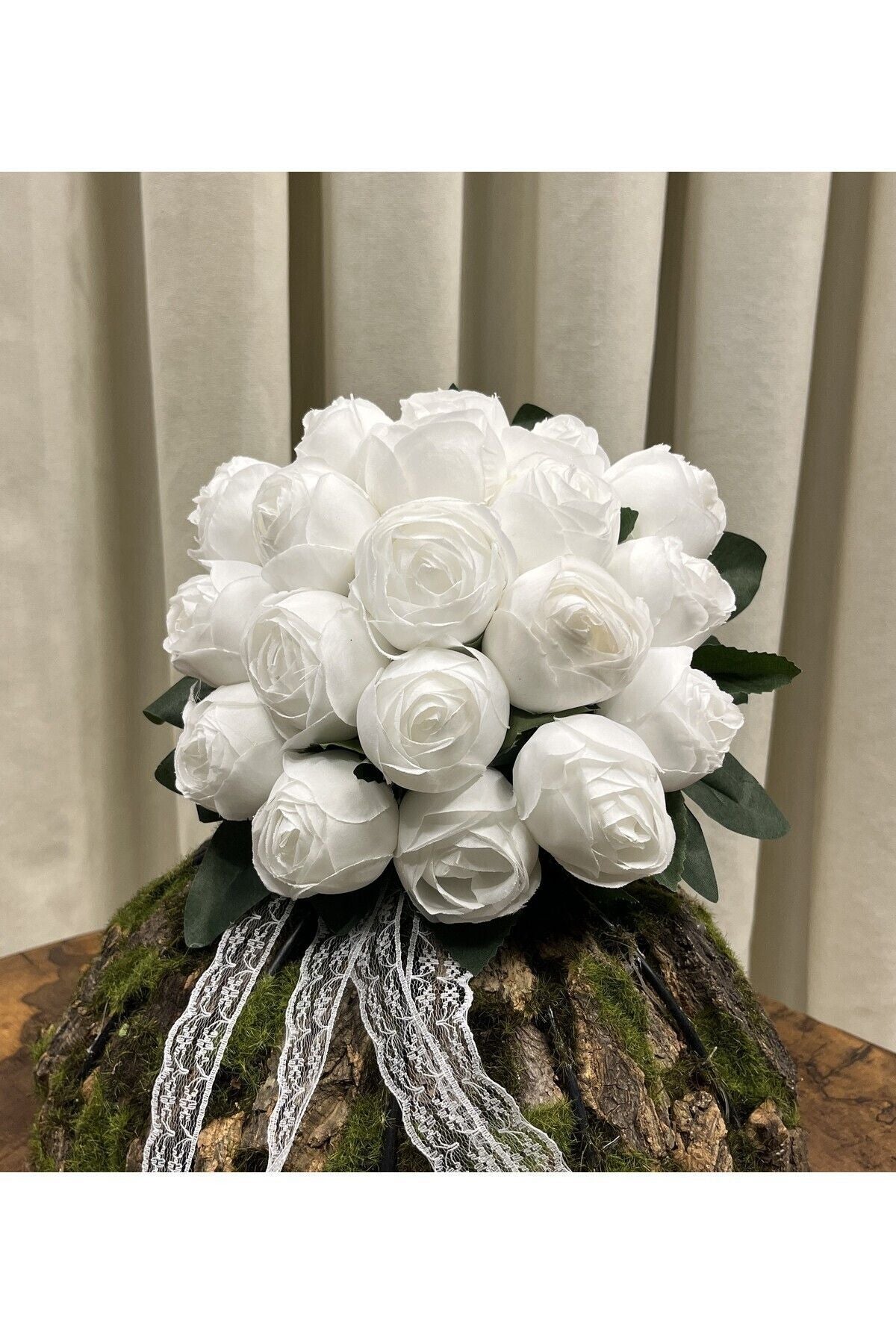 Beyaz Şakayık Gelin Çiçeği Gelin Buketi - Damat Yaka Çiçeği - Gelin Çiçeği
