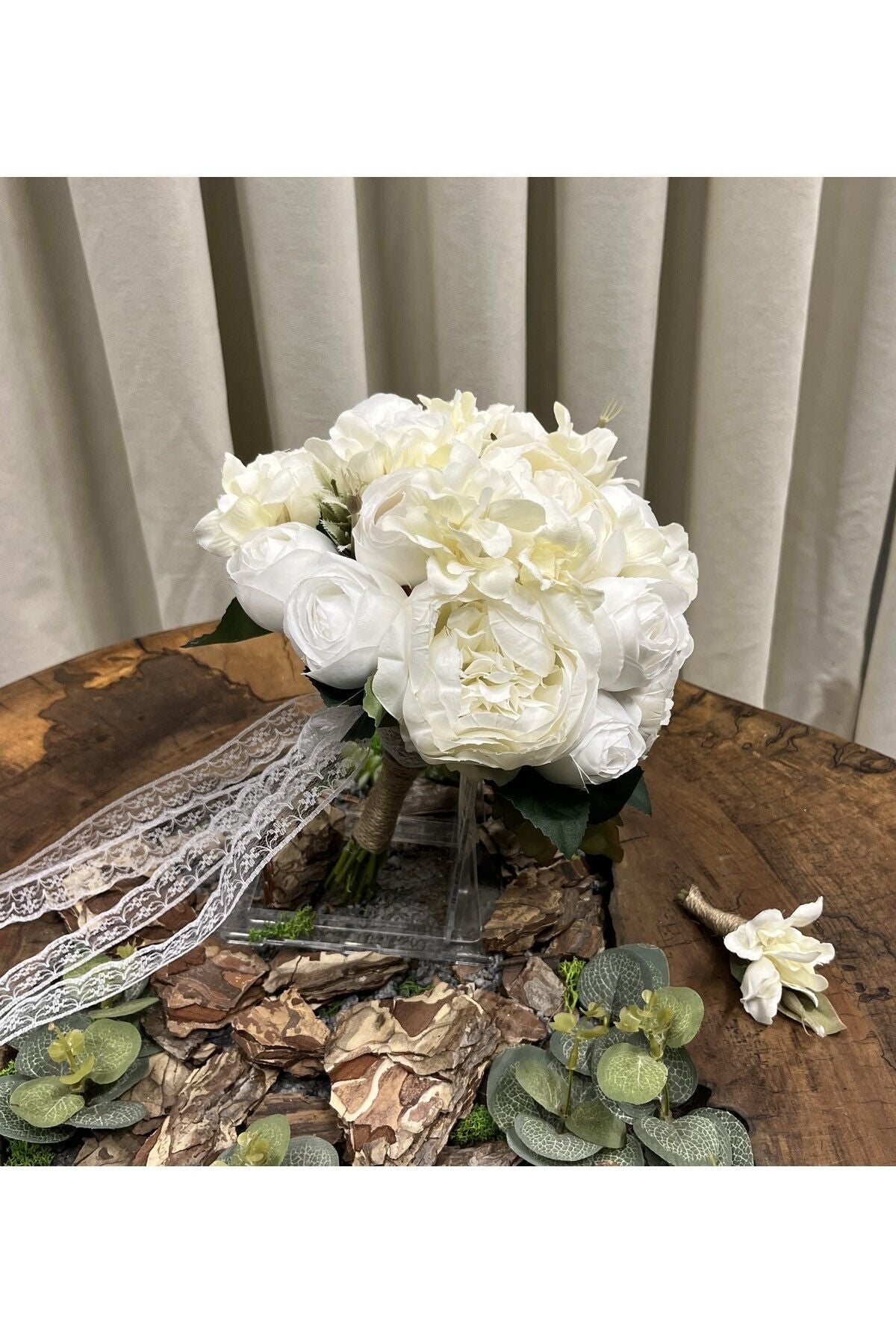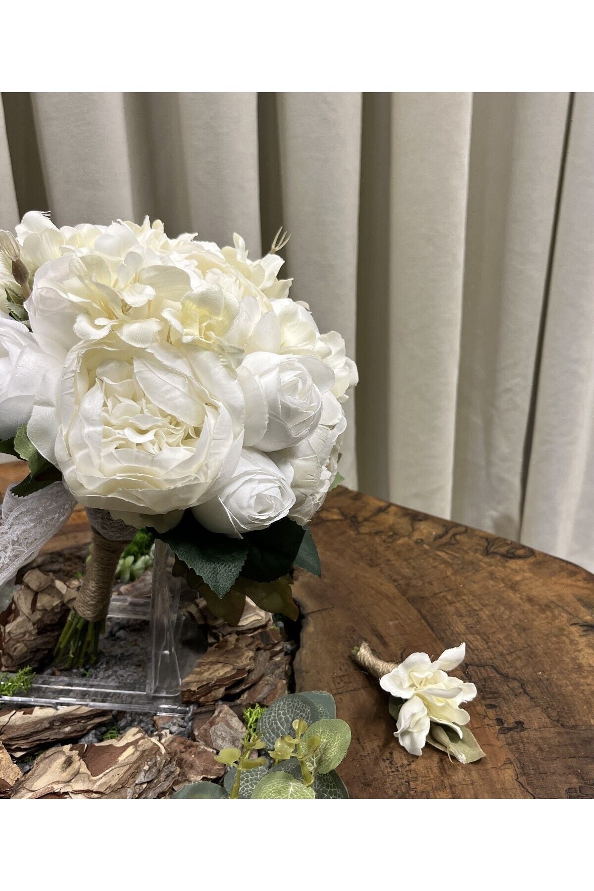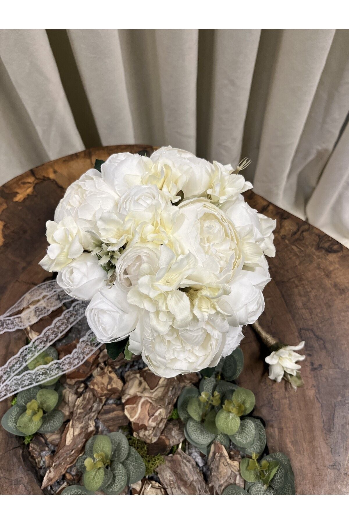 Beyaz Şakayık Gelin Çiçeği Gelin Buketi - Damat Yaka Çiçeği - Gelin Çiçeği -
