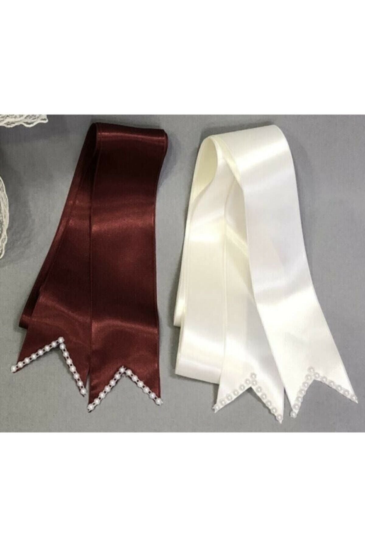 Bordo Beyaz Incili Takı Kurdelesi Gelin Damat Düğün Kına Gecesi Malzemesi