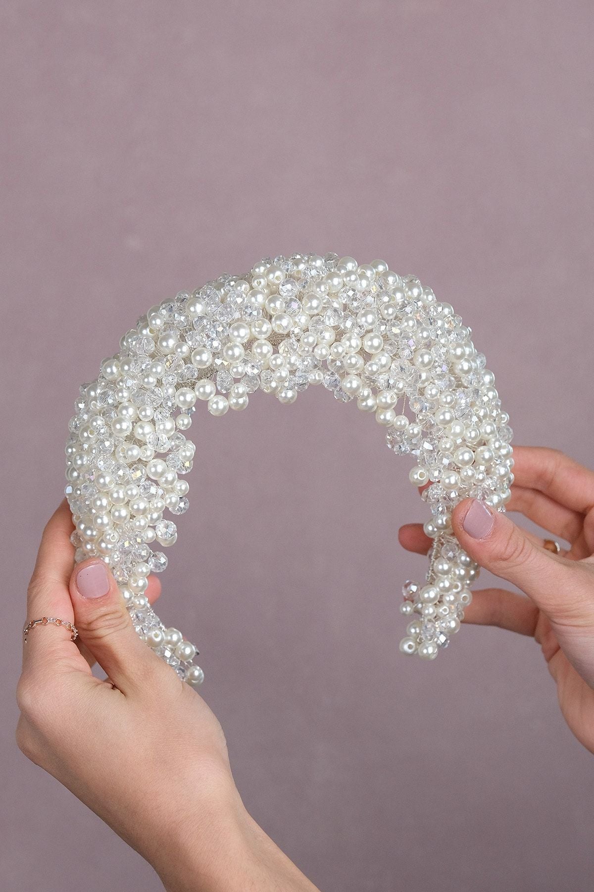 Düğün Kına Tacı Leal Bombeli Boncuklu Gelin Saç Aksesuarı