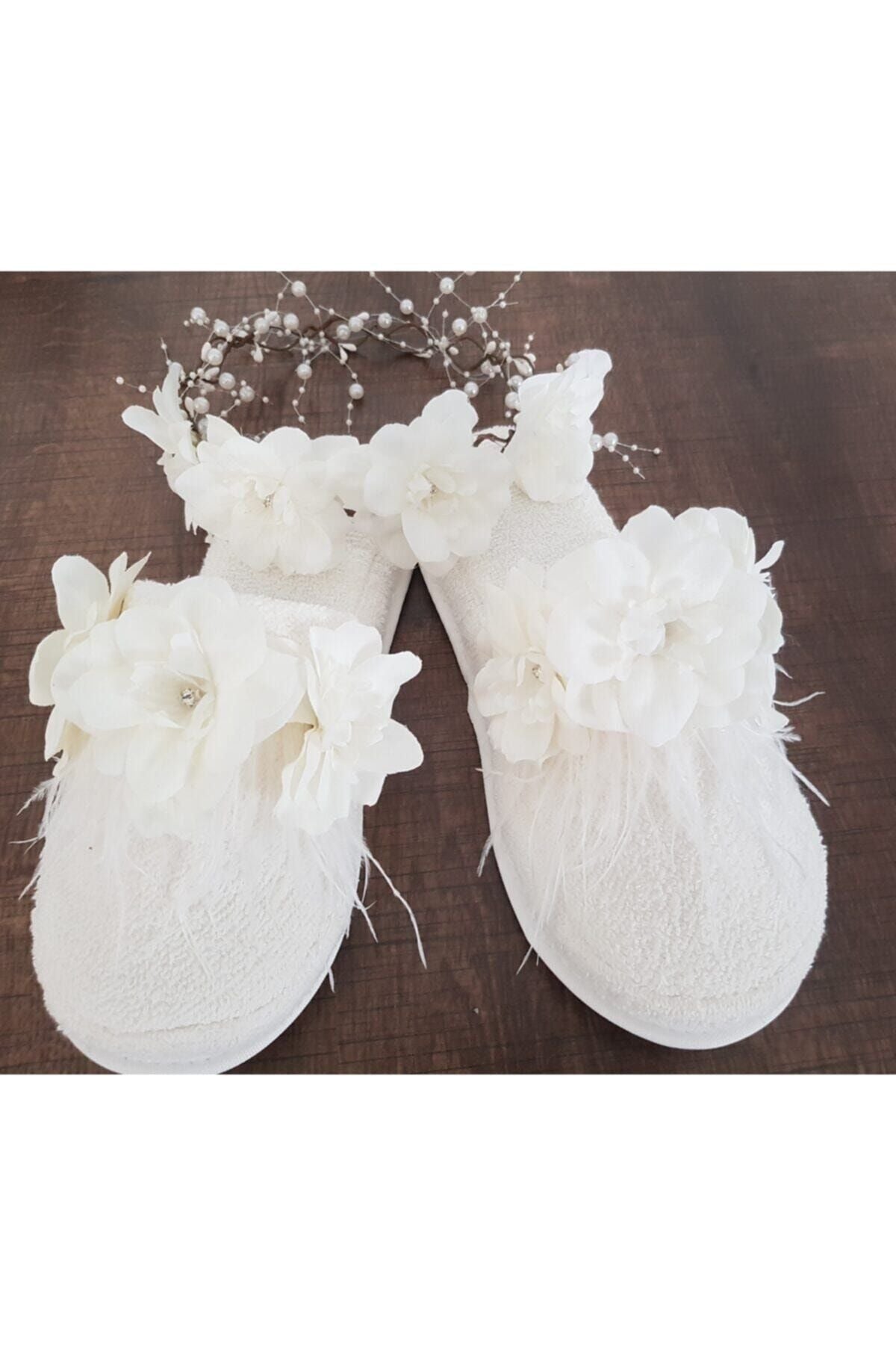 Effortt Çiçekli Inci Lohusa Terlik Taç