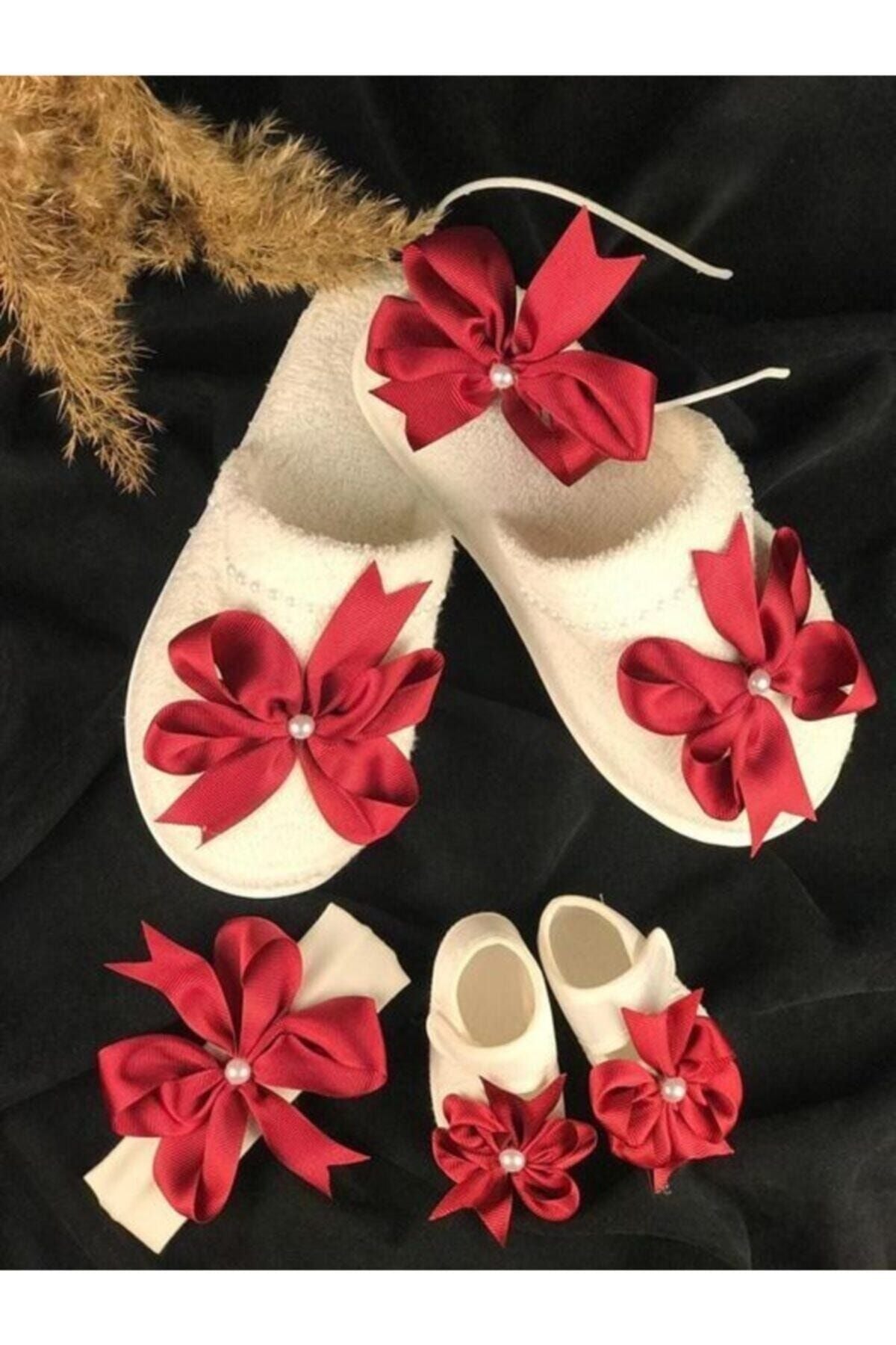 Fiyonklu Lohusa Terlik Taç 4 Lü Set