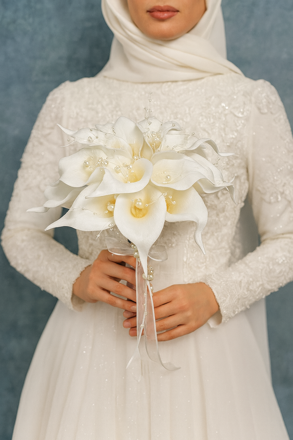 Gala Çiçekli Gelin Buketi Yaka çiçeği dahildir