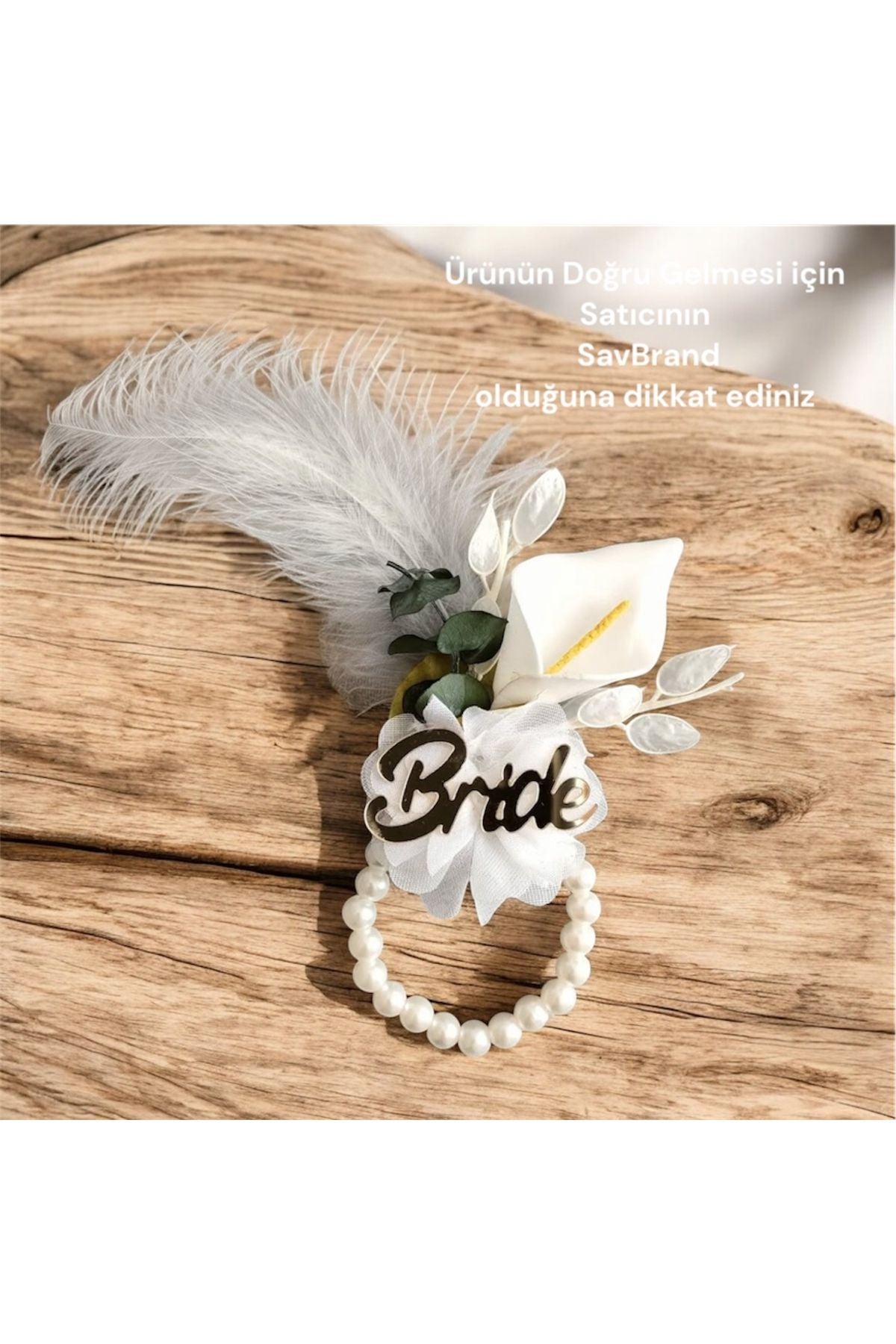 Gala Çiçekli Okaliptuslu Beyaz Nedime Bilekliği 5 Adet , Kına Malzemeleri ,Nedime Bilekliği