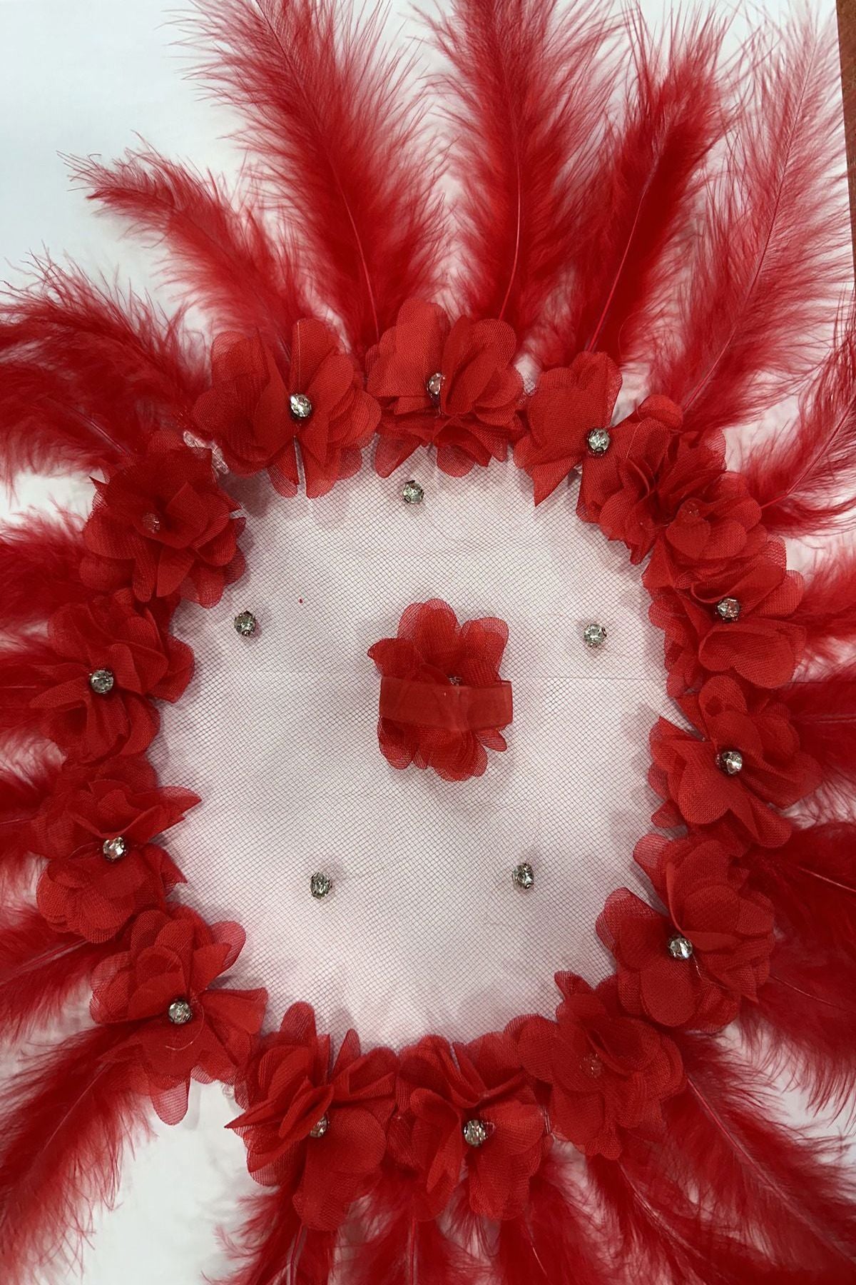 Gelinliğinize Işıltı ve Hareket: Kırmızı Tüylü ve Taşlı Halay Mendili