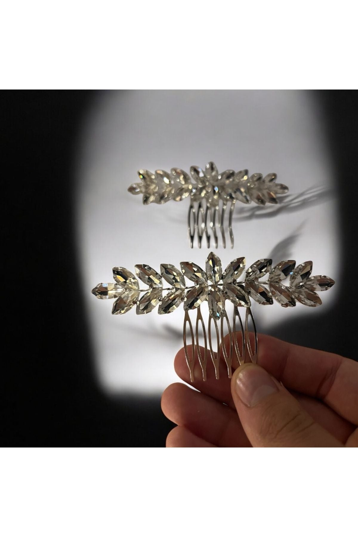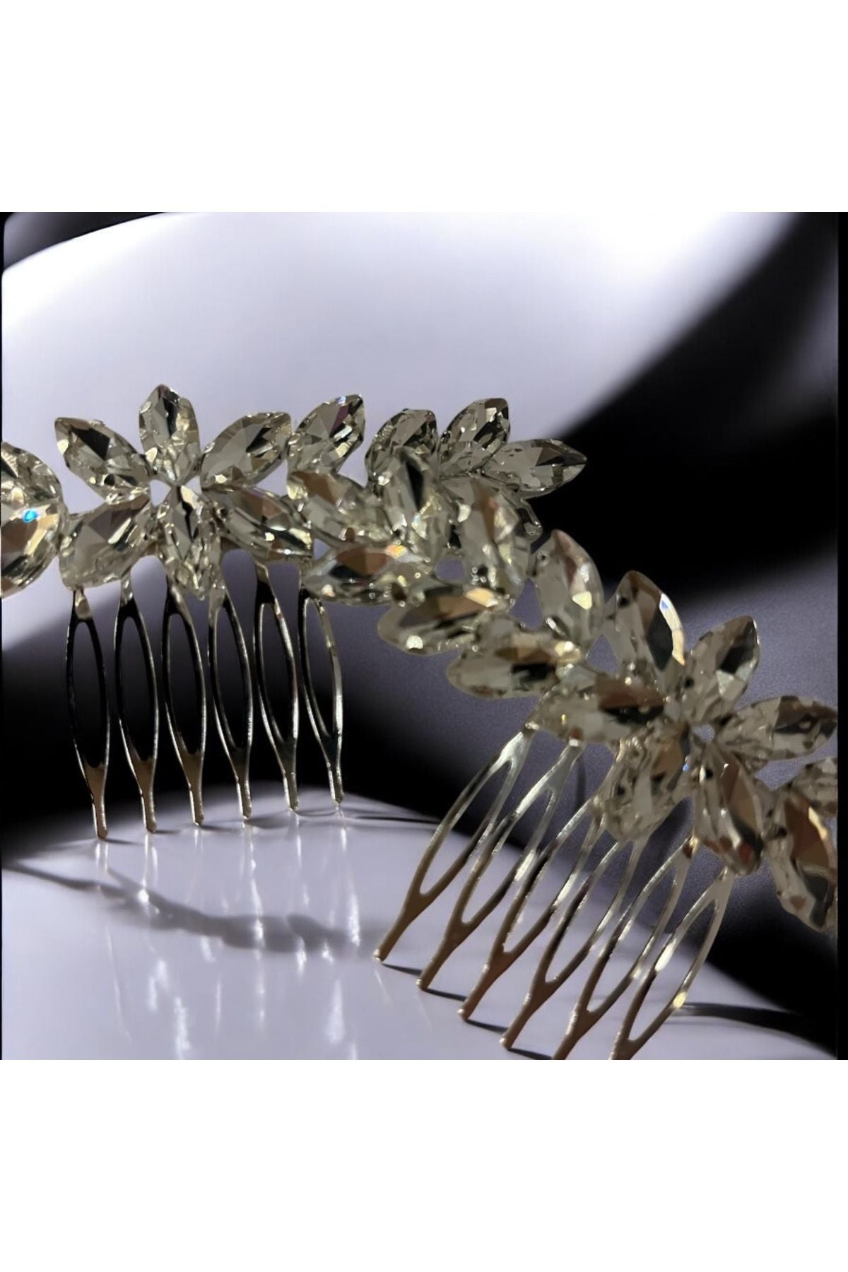 Gümüş Mekik Taşlı Parlak Çift taraflı Gelin Tokası