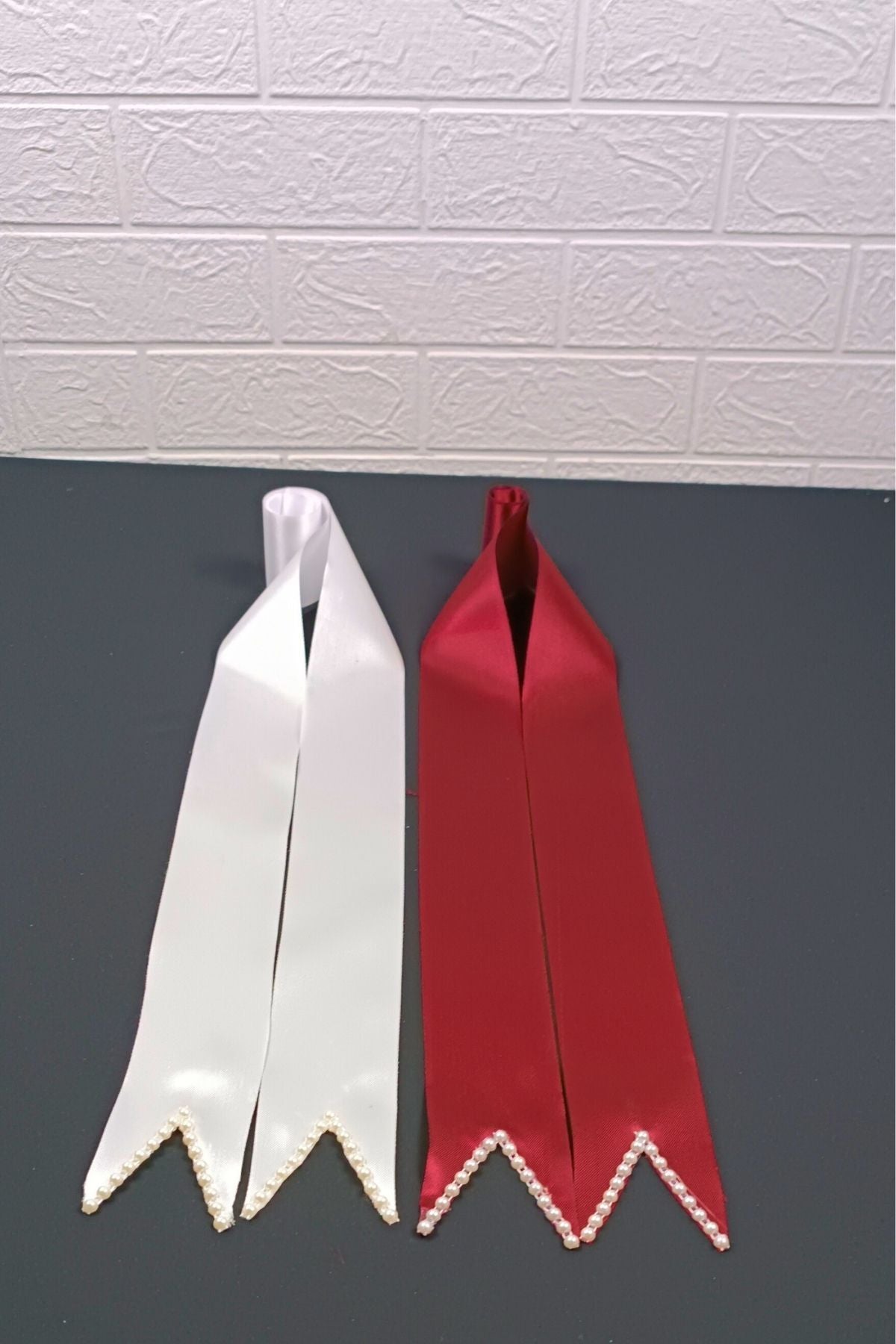Düğün ve nişan törenlerinde zarafeti ön plana çıkarmak isteyen çiftler için özel olarak tasarlanmış İncili Gelin Damat Takı Kurdelesi, sade şıklığı ve klasik incilerle bezenmiş detaylarıyla öne çıkıyor.