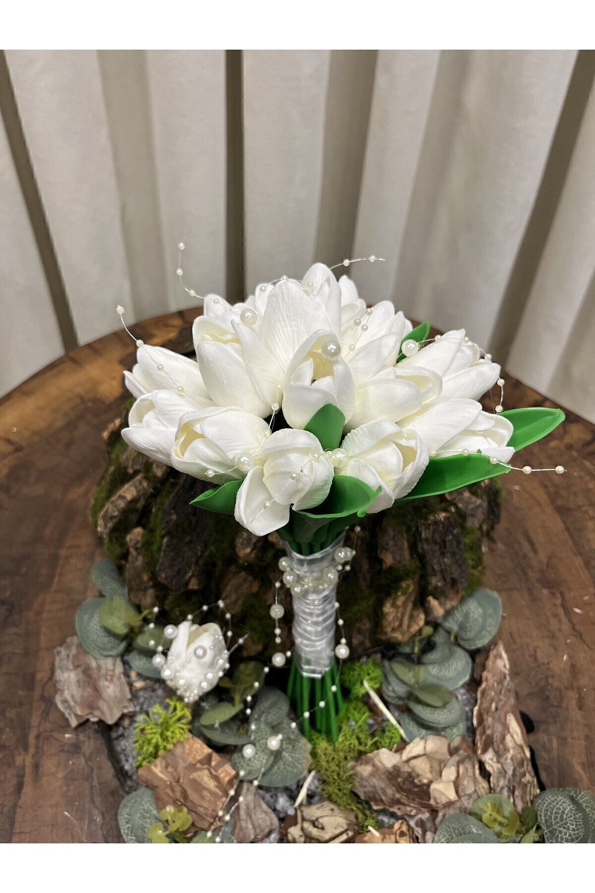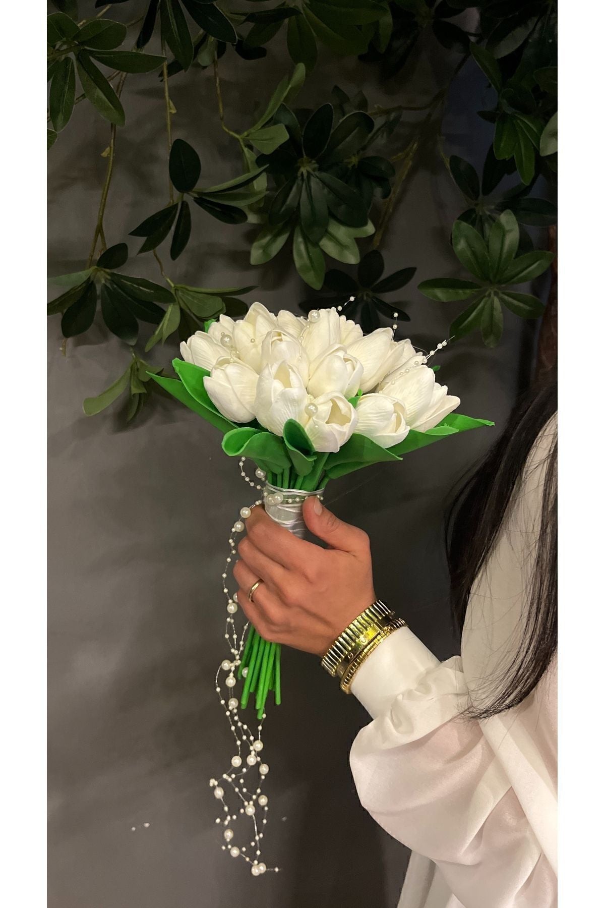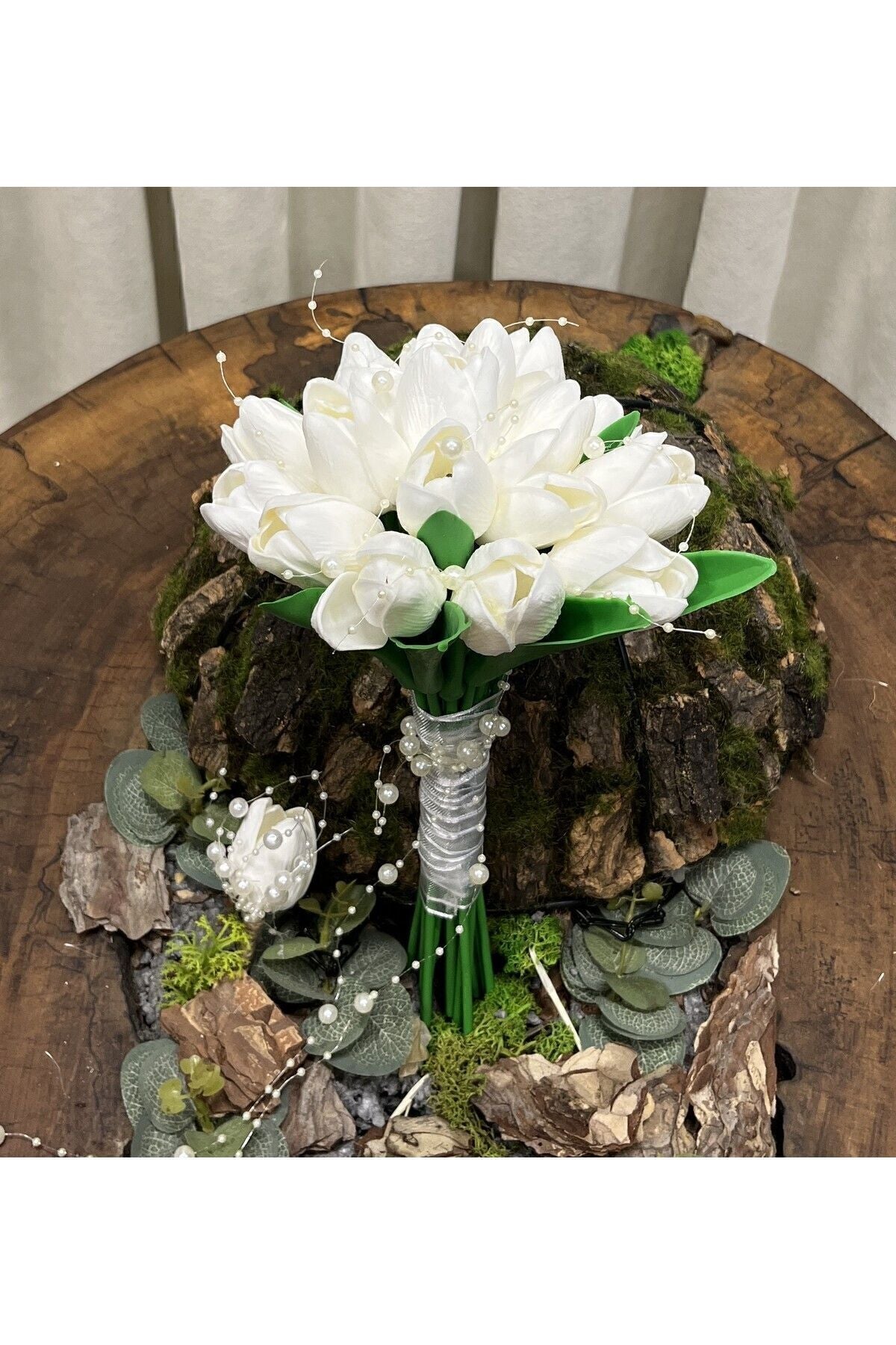 Incili Islak Lale Gelin Çiçeği Gelin Buketi - Damat Yaka Çiçeği - Gelin Çiçeği -