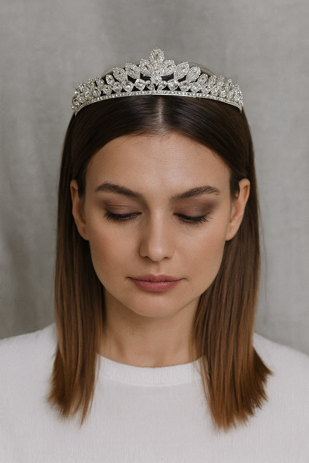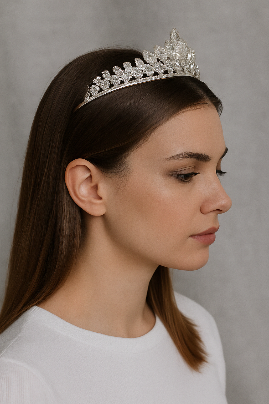 Işıltılı zirkon taşlarla tasarlanan parıltı gelin tacı, düğün, nişan ve kına gecelerinde gelinlerin zarafetini ön plana çıkarır. Hafif ve rahat kullanımıyla gün boyu şıklığınızı tamamlayan bu özel taç, gelinliğinize ışıltılı bir dokunuş katar.
