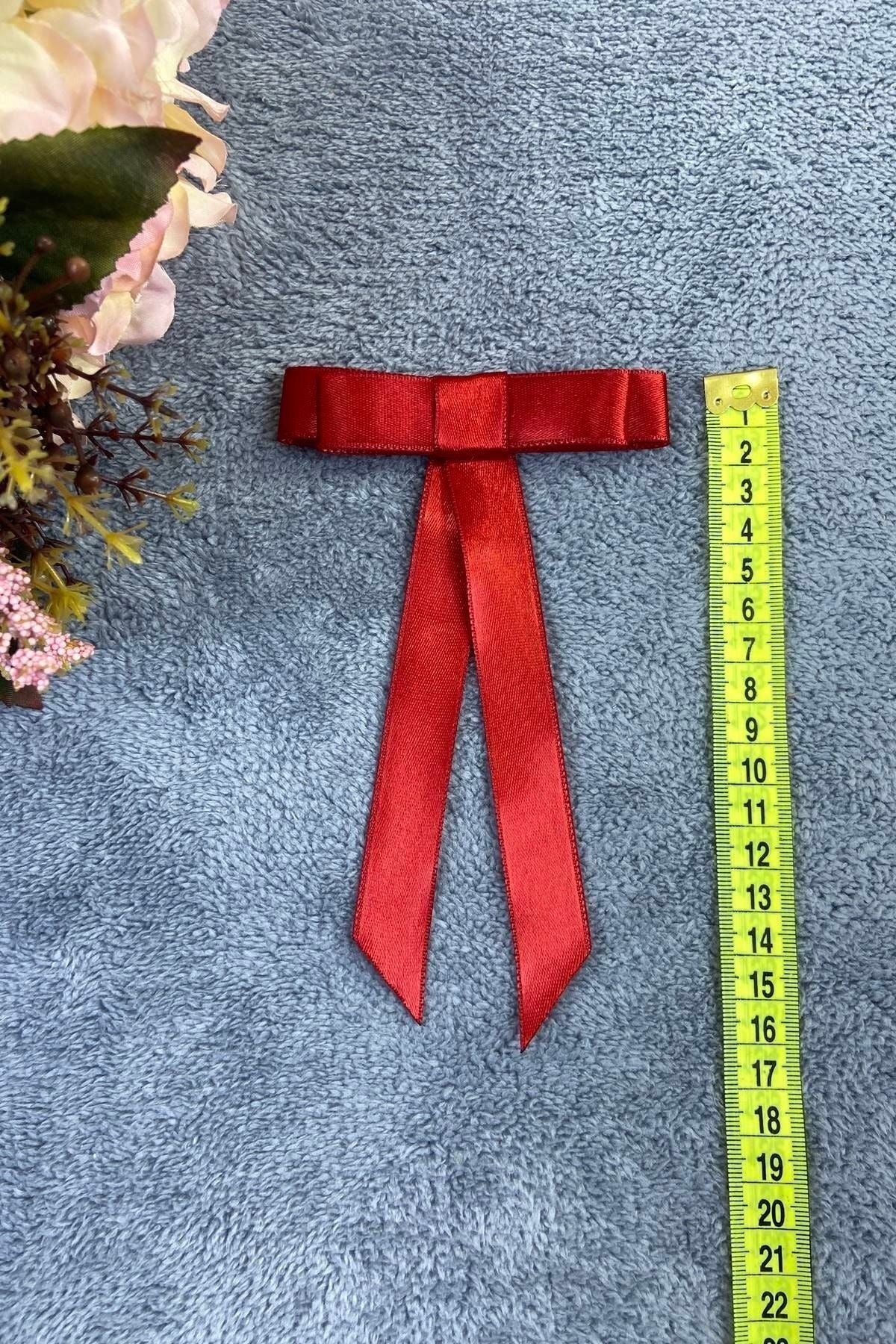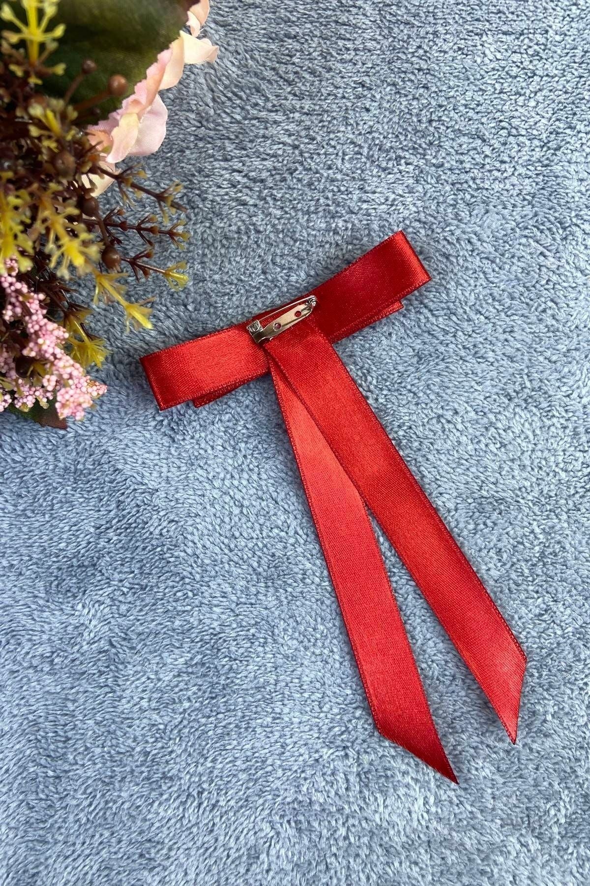 Kadın Kırmızı Saten Kadın Broş Yaka Aksesuarı Yaka Kurdelesi Kıyafet Aksesuarı Yaka Broşu