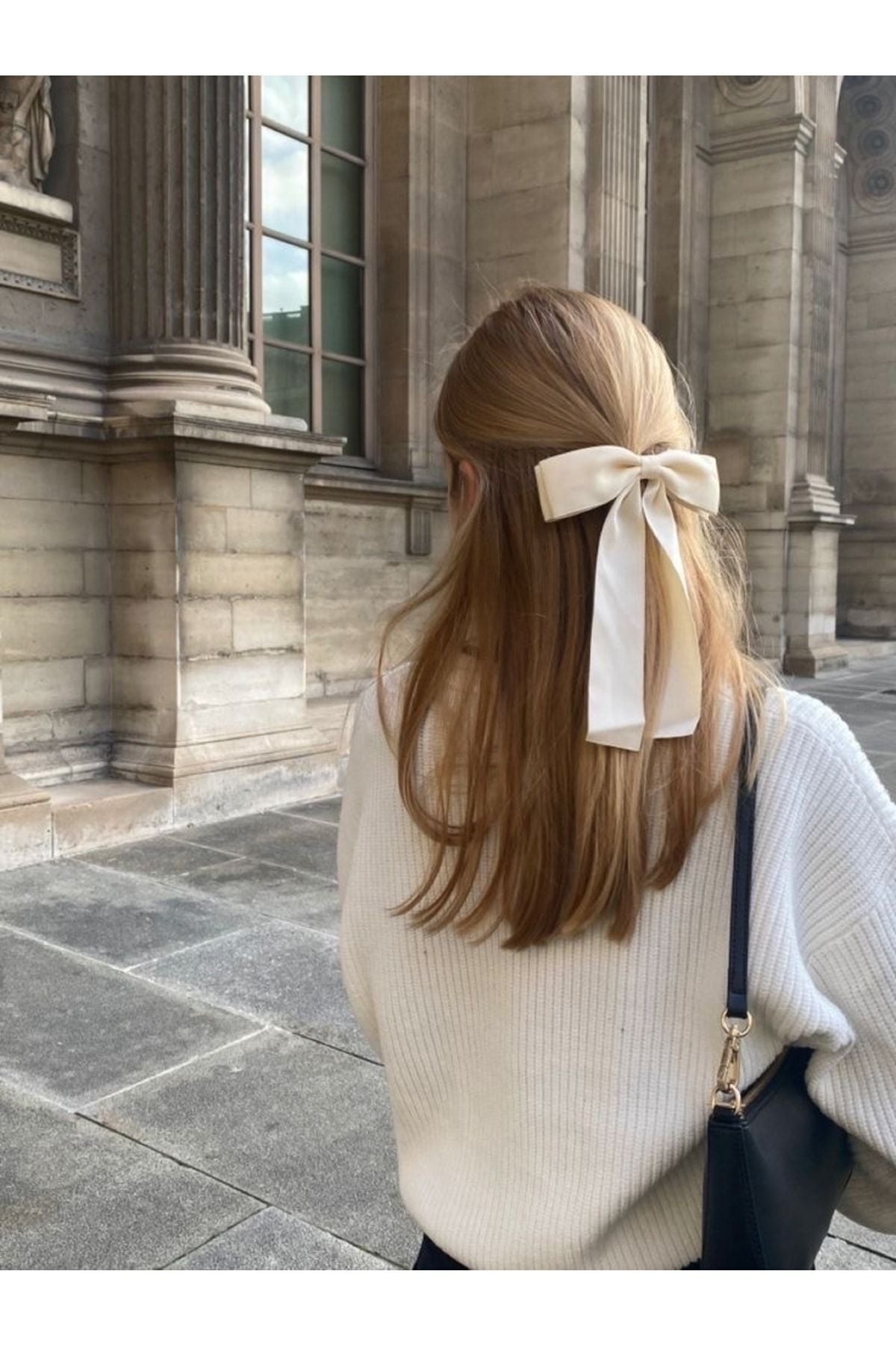 Kadın Saten Ekru Fiyonk Otomatik Toka