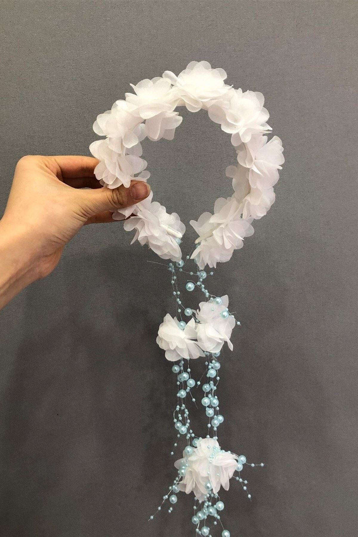 Kına Eğlence Tacı Beyaz Lazer Çiçekli Taç