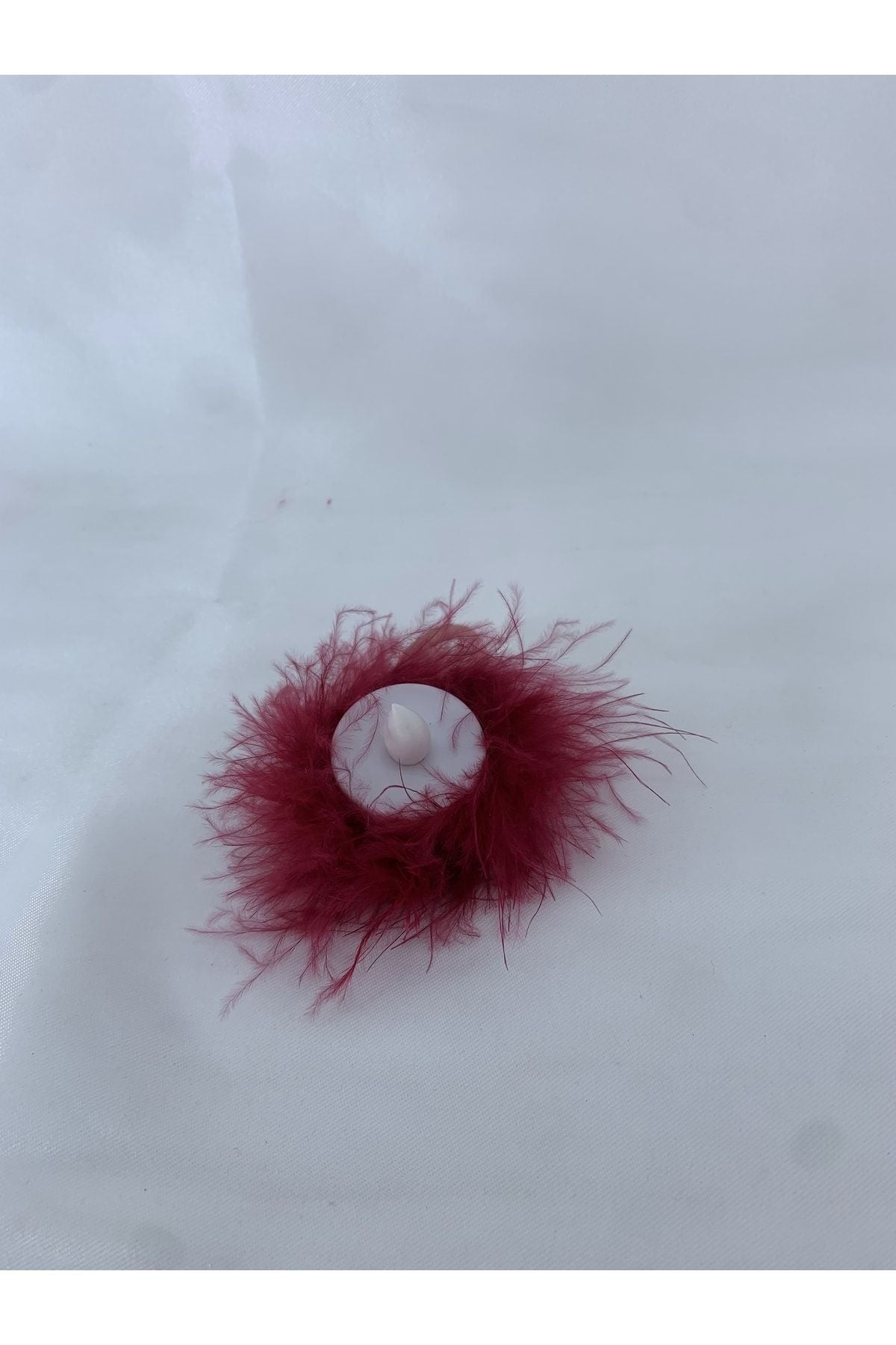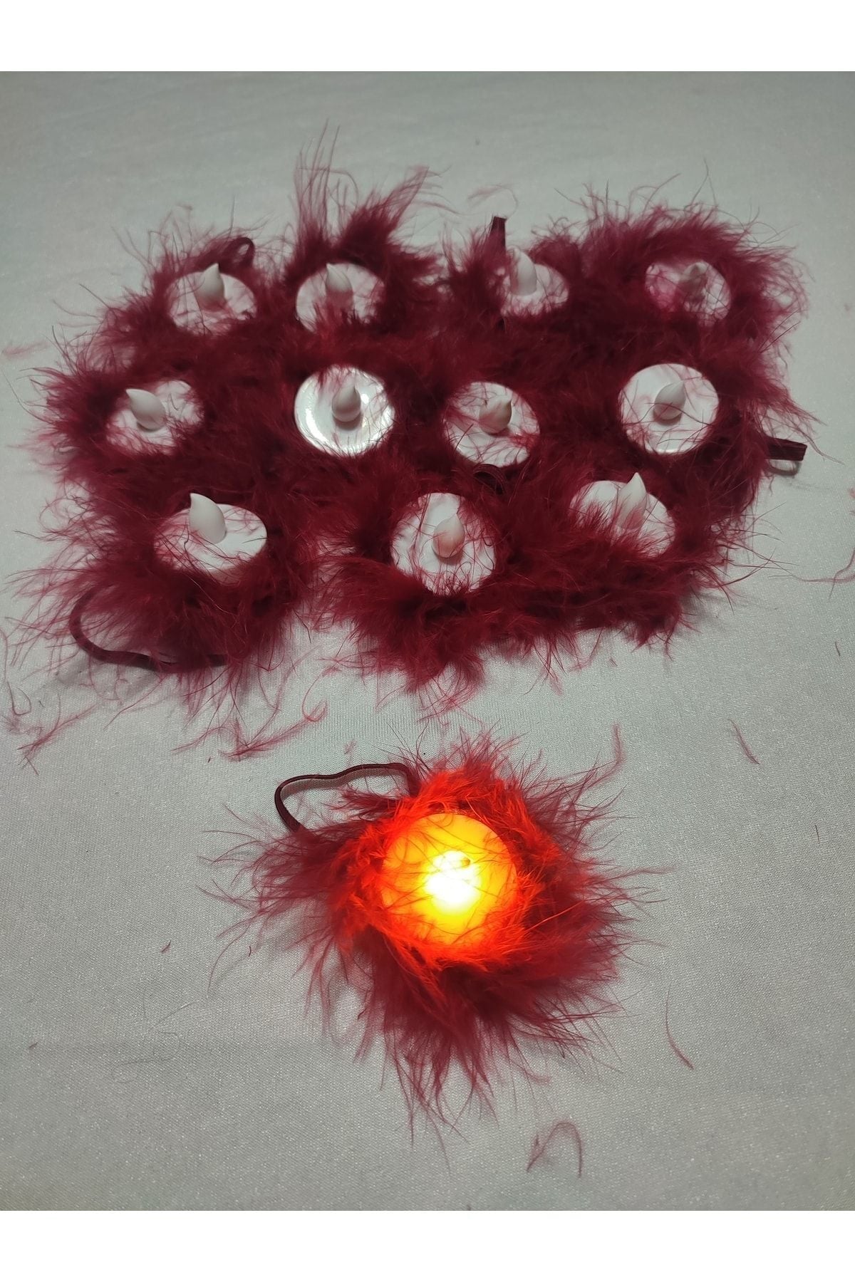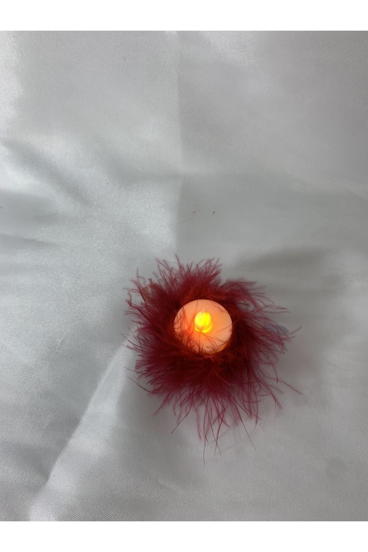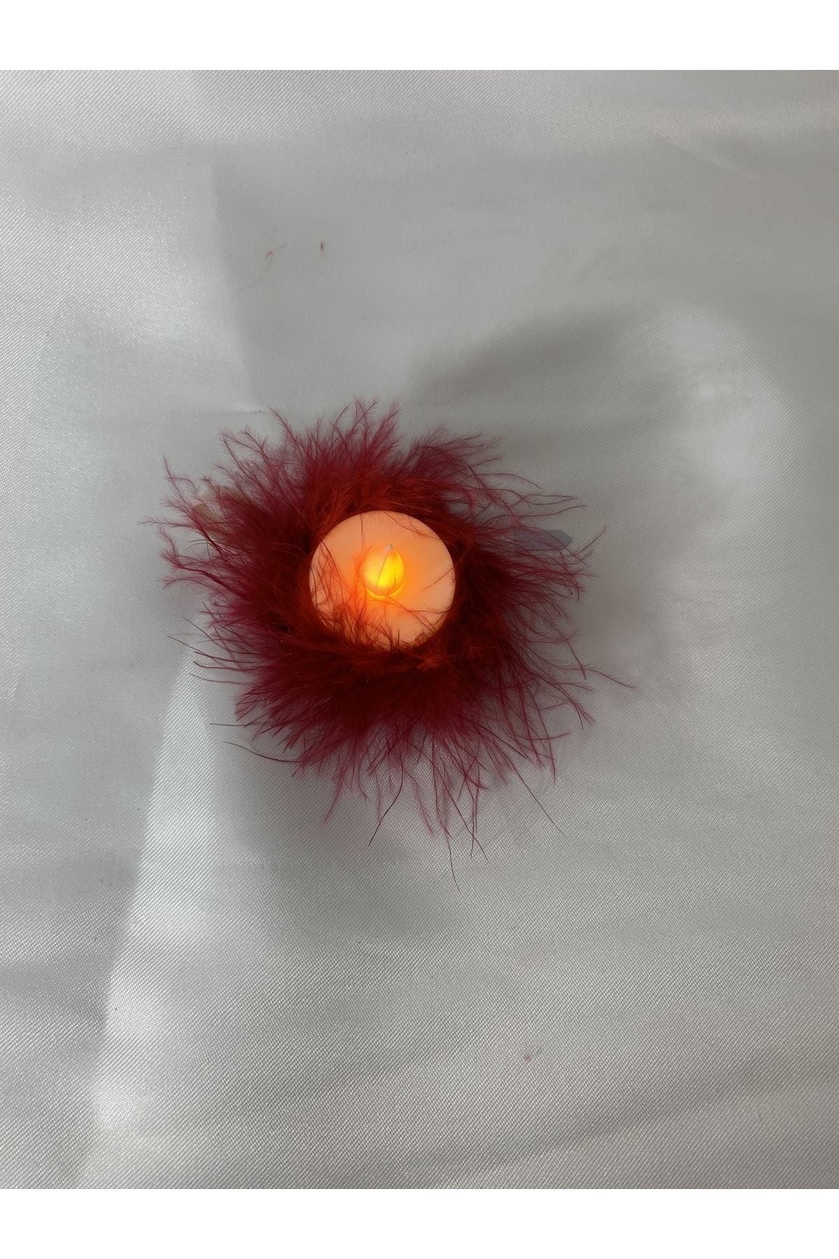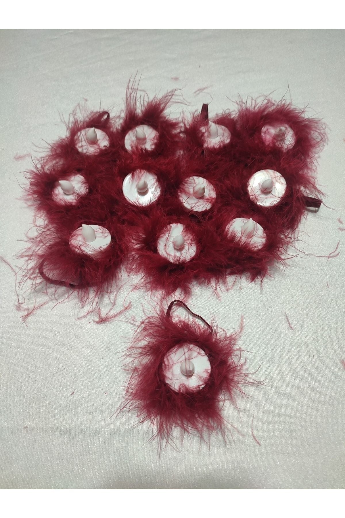 Kına Geceleri Için 12 Adet Bordo Tüylü Ledli Kına Mumu (EL MUMU)