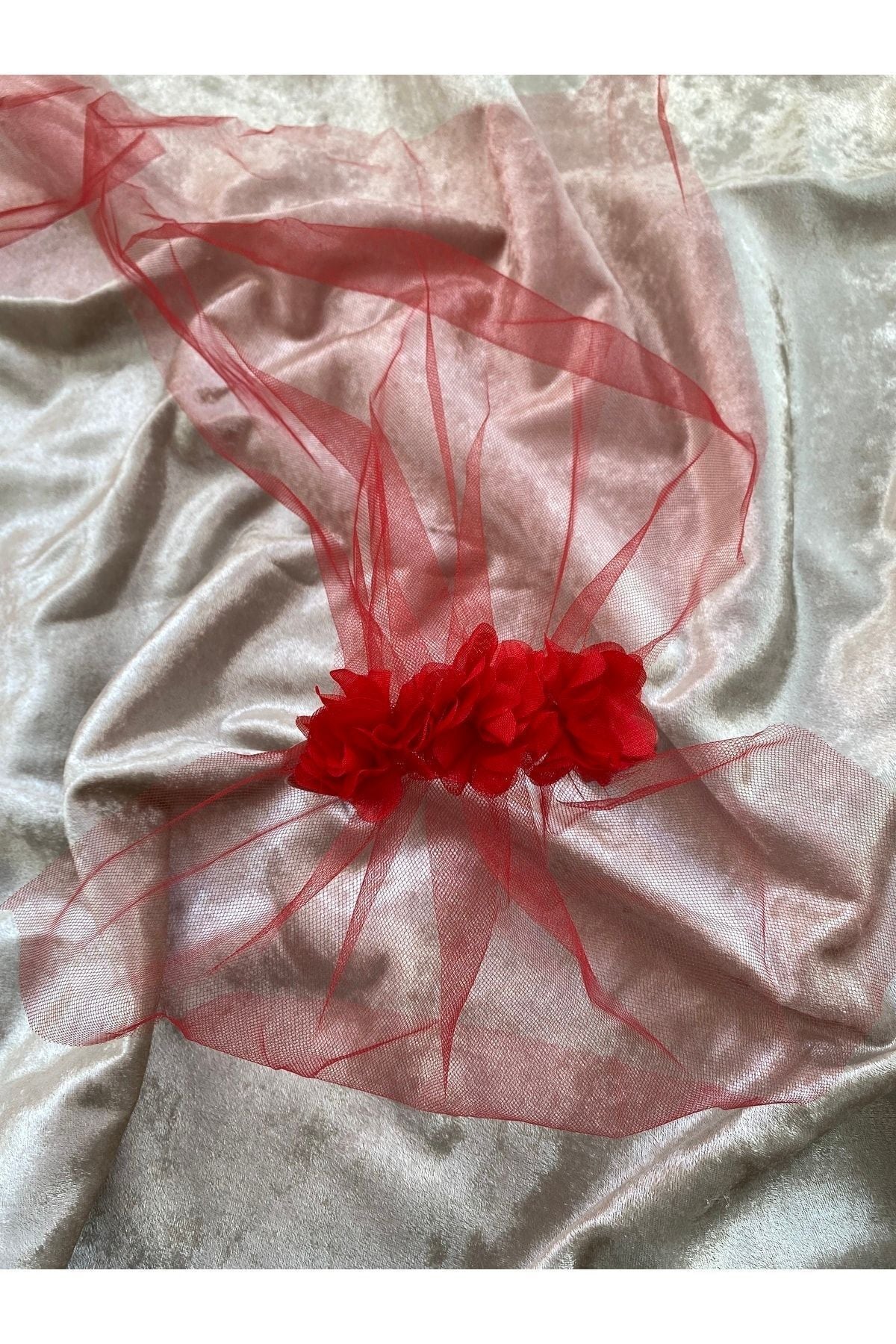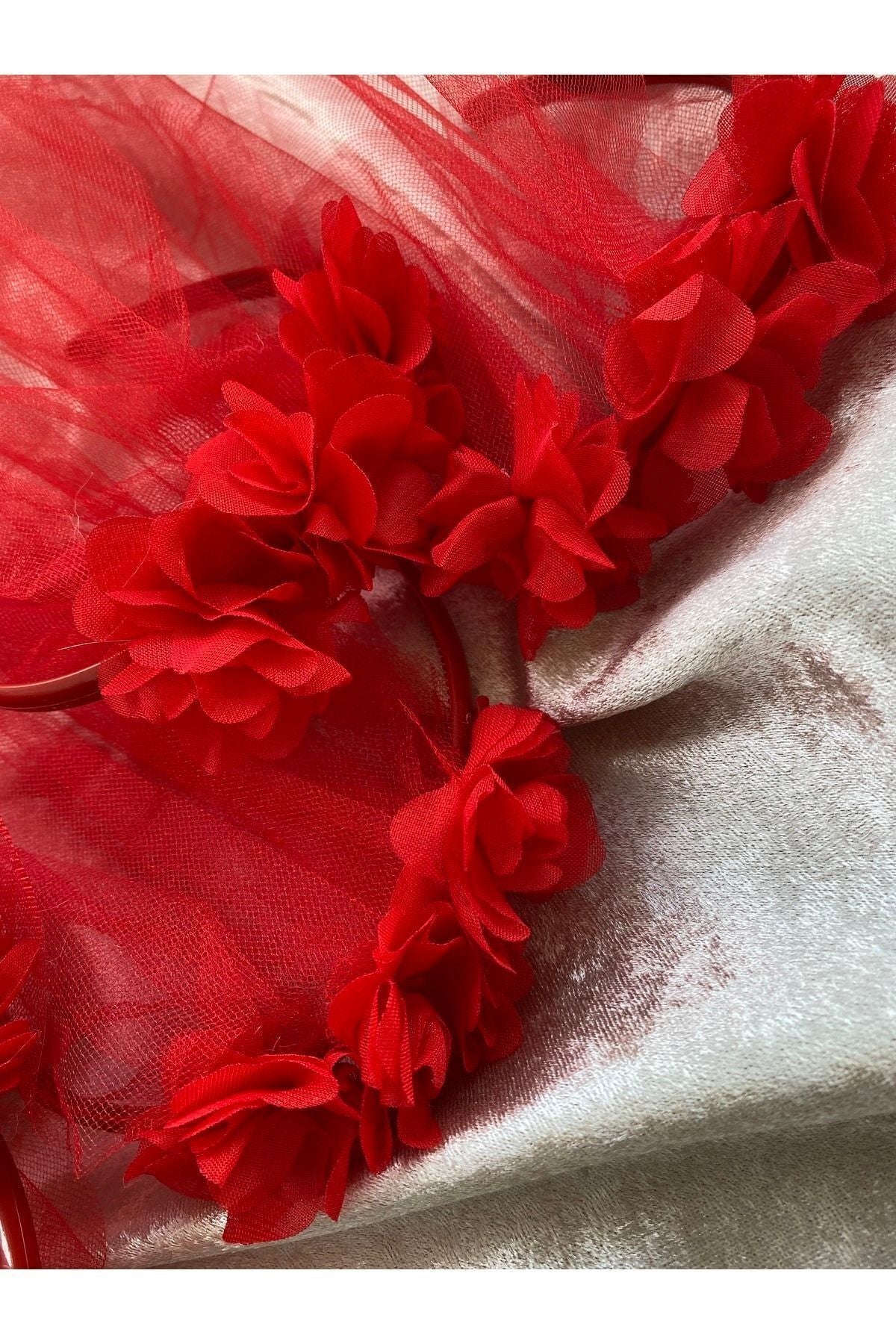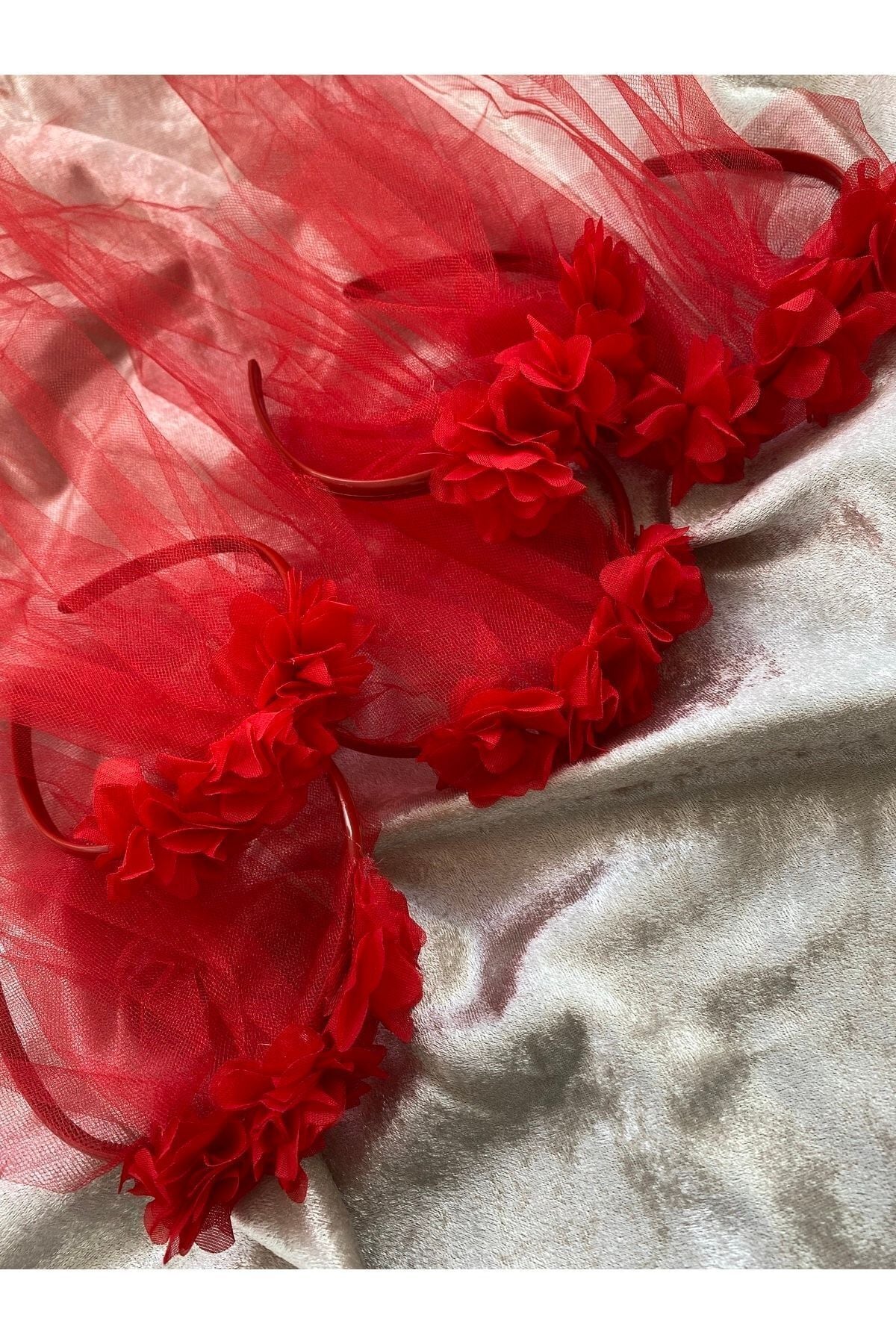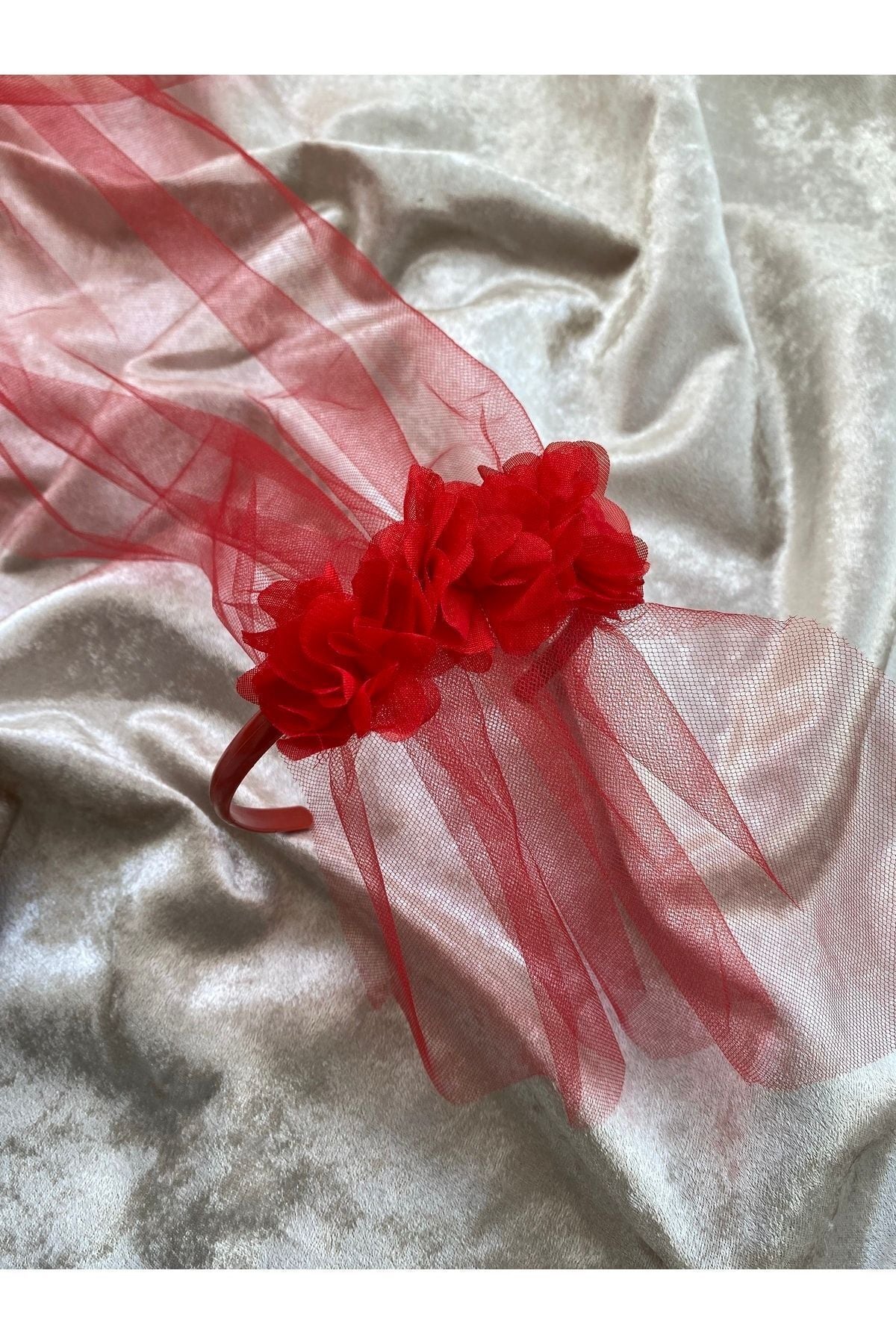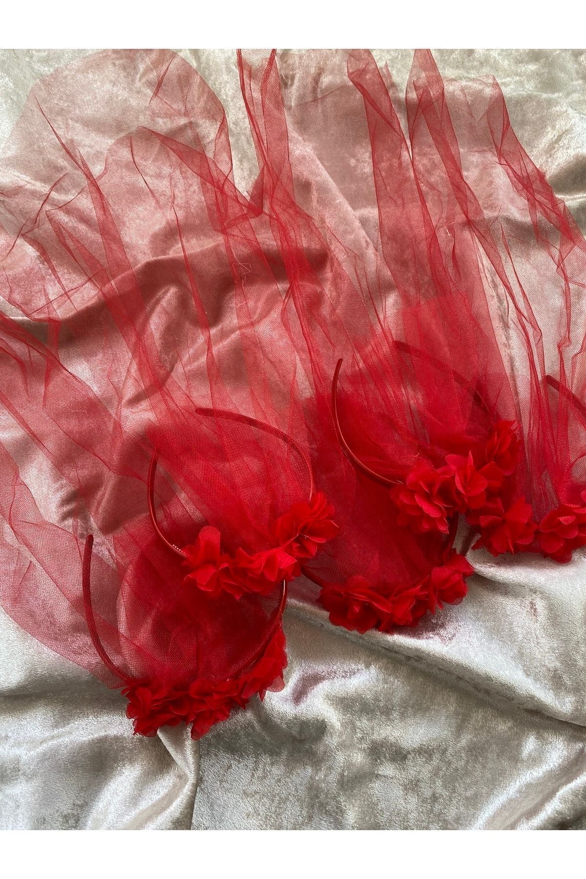 Kına Gecesi Lazer Güllü Tüllü Nedime Tacı Kırmızı 5’li Paket