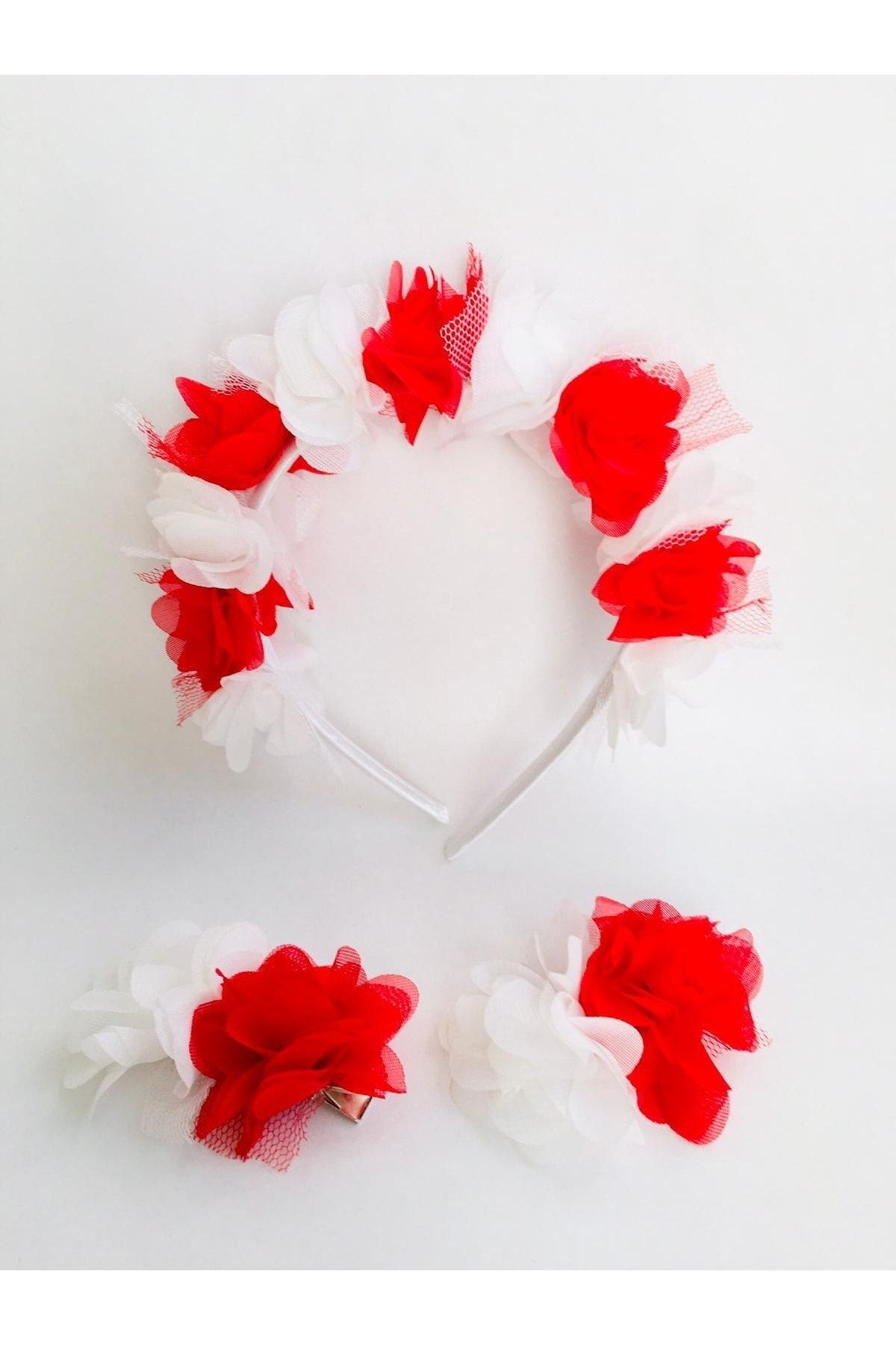 Kırmızı Beyaz 23 Nisan 29 Ekim Tören Kutlama Saten Kaplı Taç Ve 2'li Okul Toka Set