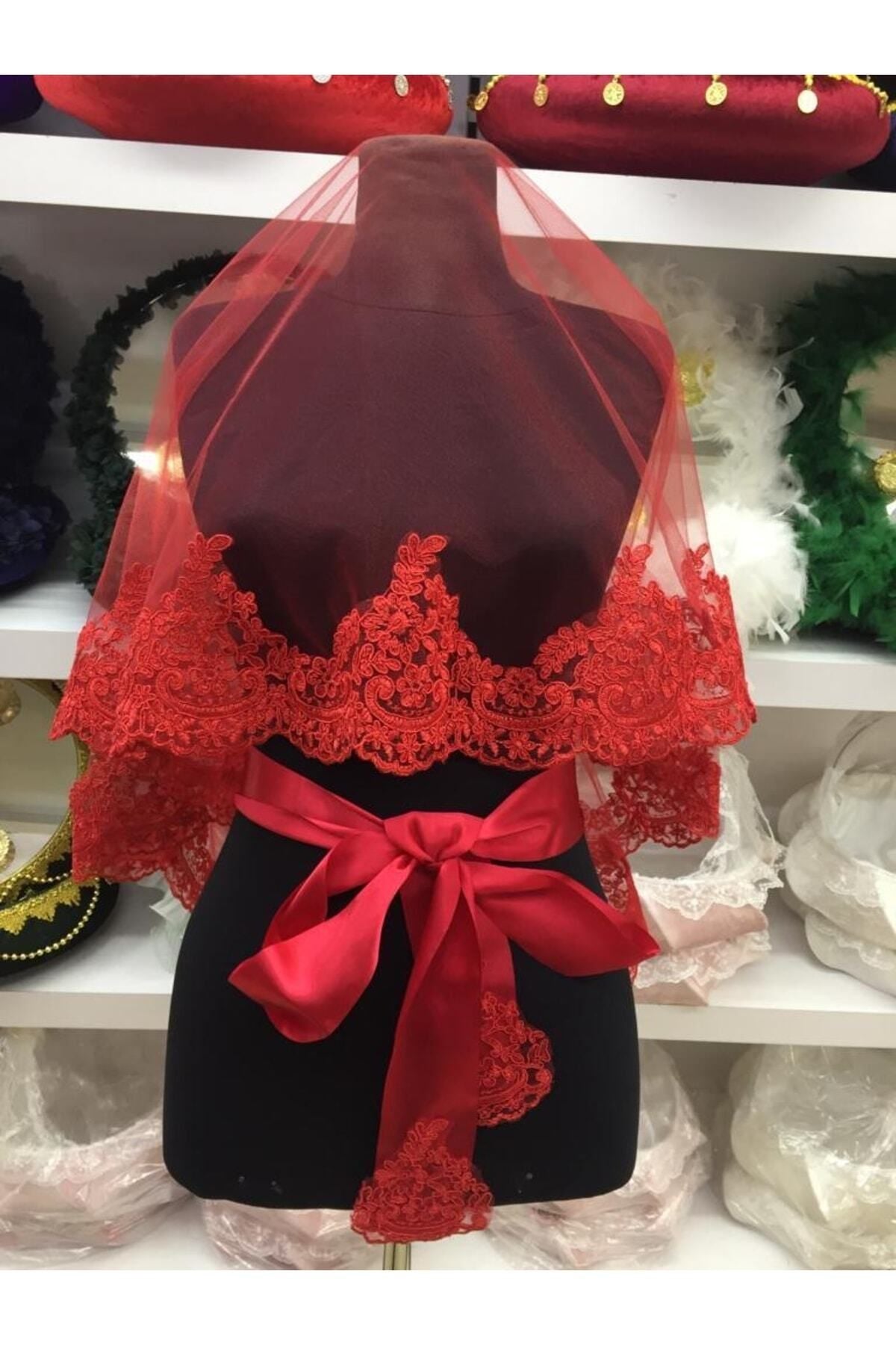 Kırmızı Dantelli Gelin Duvak Eldiven Kuşak Tam Set Gelin Pullusu Örtüsü Kına Malzemesi