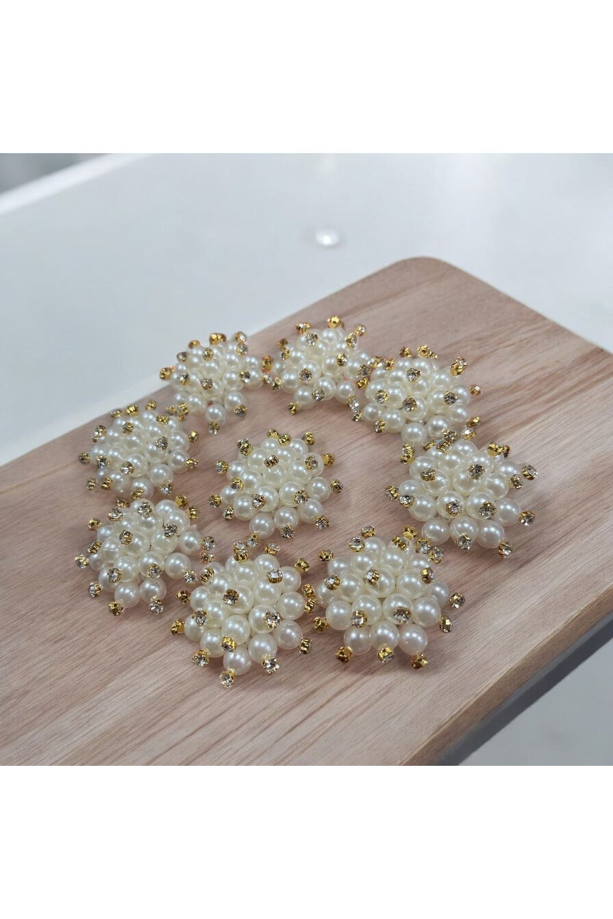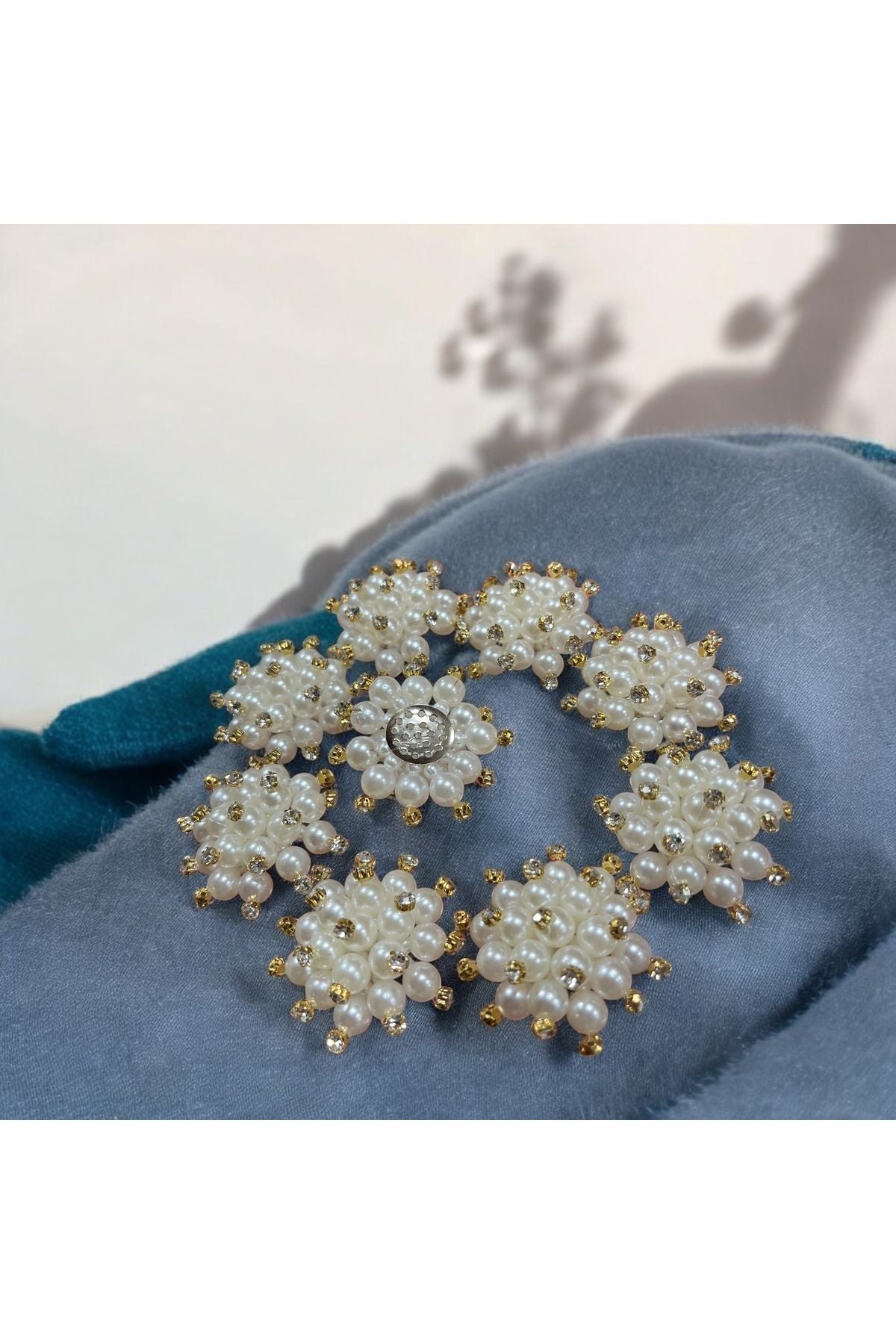 Krem Boncuklu Taş Broş 5 Adet