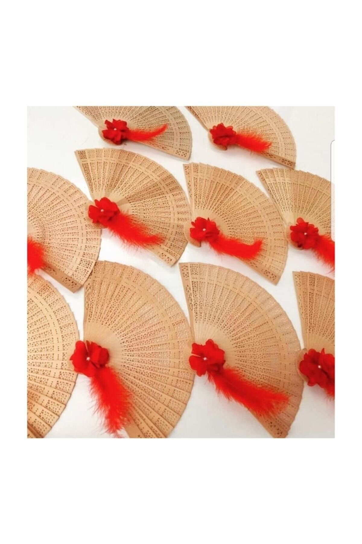 Lazer Güllü Tüylü Ahşap Yelpaze Süslü Yelpaze Parti Aksesuarı 5 Adet