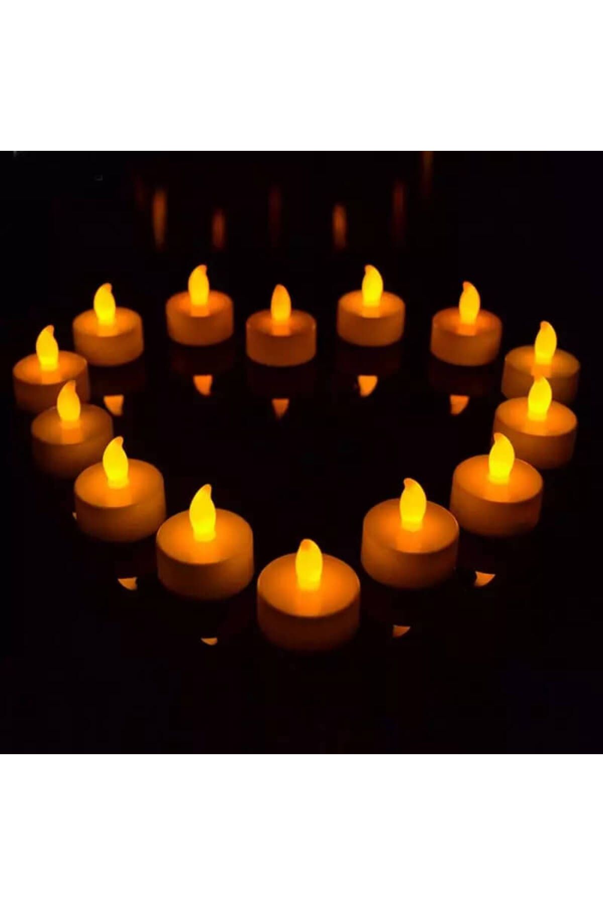 Ledli Mum Tealight Işıklı Dumansız Alevli Sarı Pilli Led Mum 4 Adet Pil Dahil