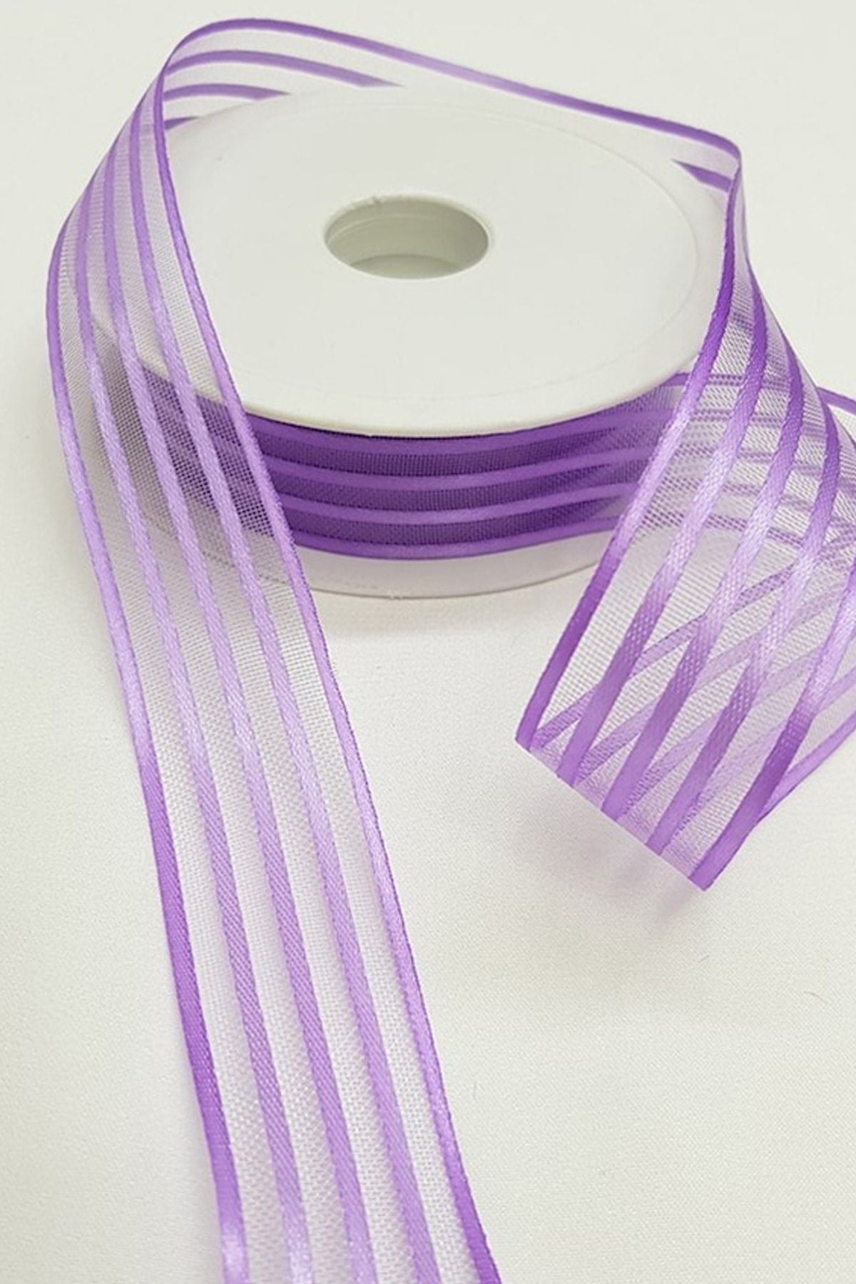 Lila Bohça Süsleme Çeyiz Gelin 5 Metre Çizgili Organze Kurdele Tasarım