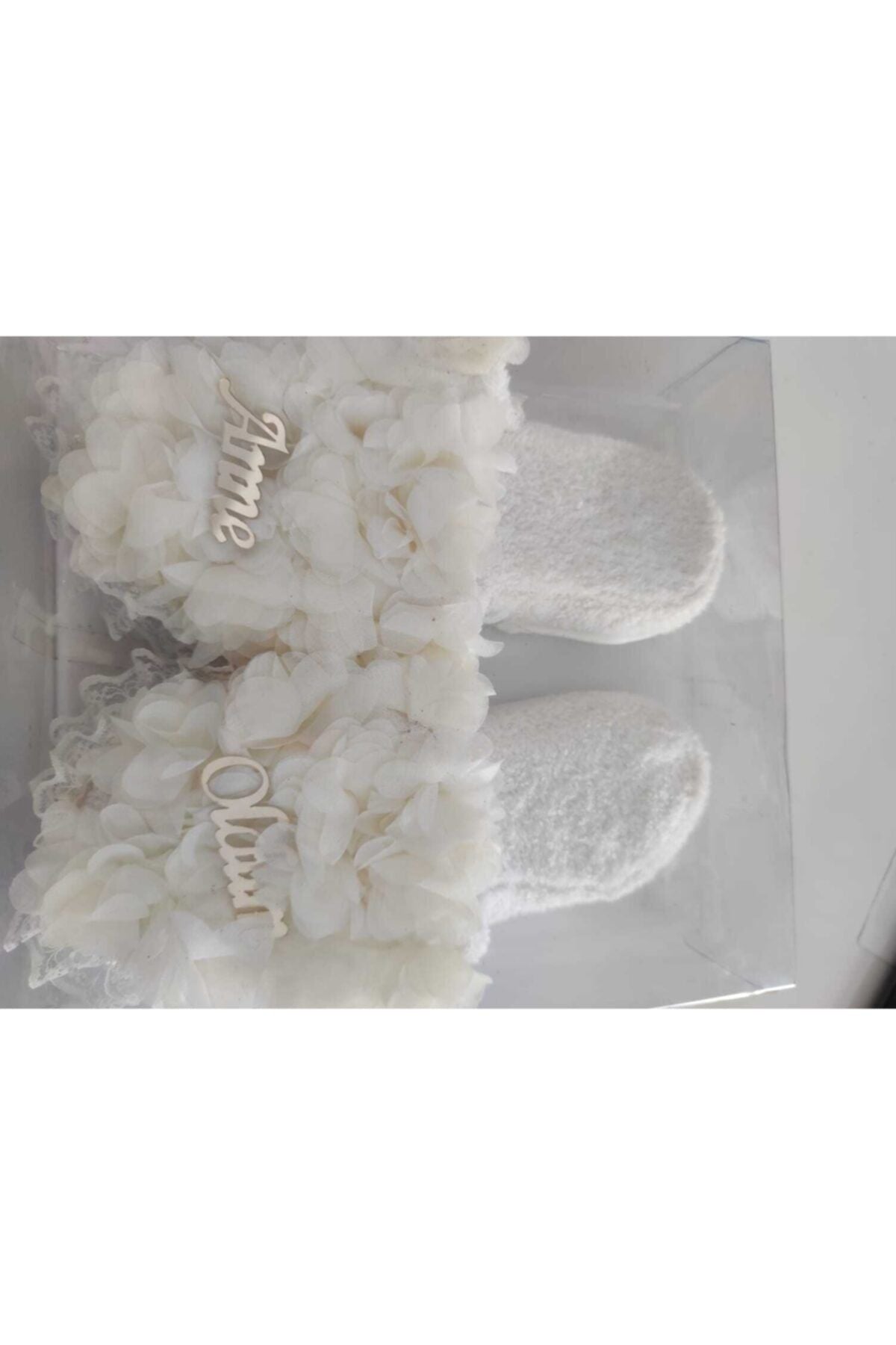 Lohusa Terliği Beyaz Renk Anne Oldum Yazılı