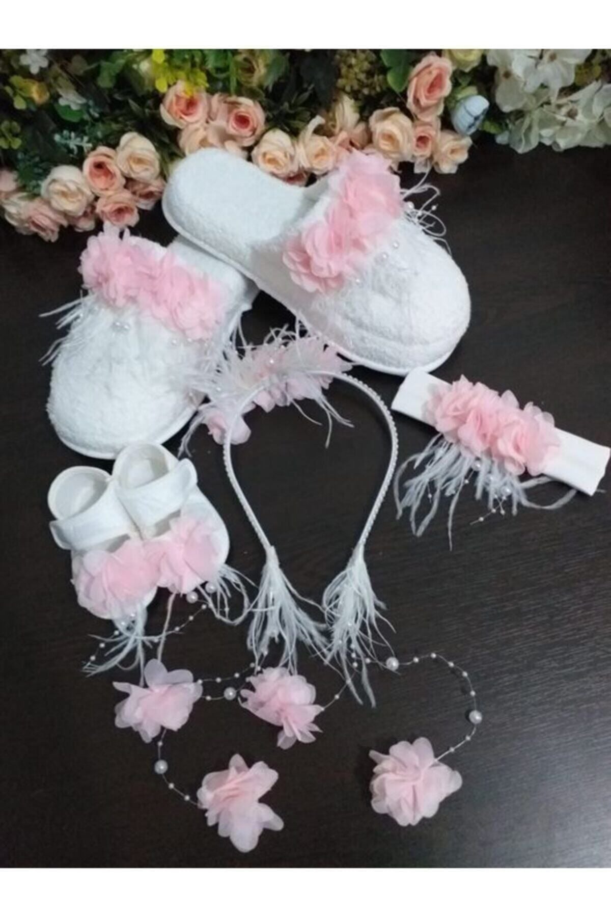 Lohusa Terlik Ve Taç Bebek Patik Ve Bandana Seti