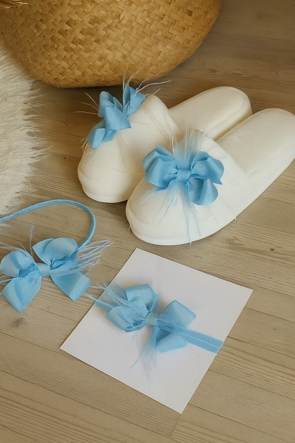 Mavi Fiyonklu Tüylü Lohusa Terliği Tacı