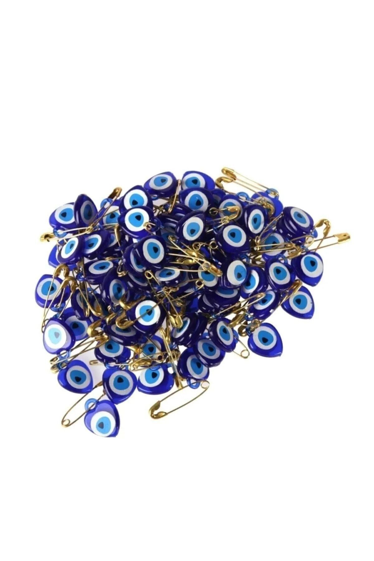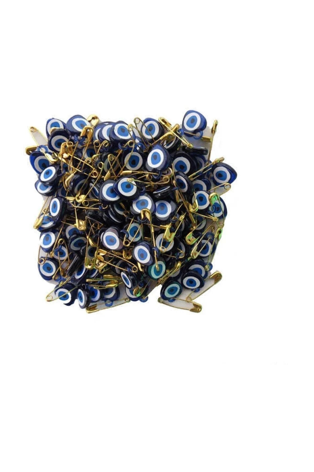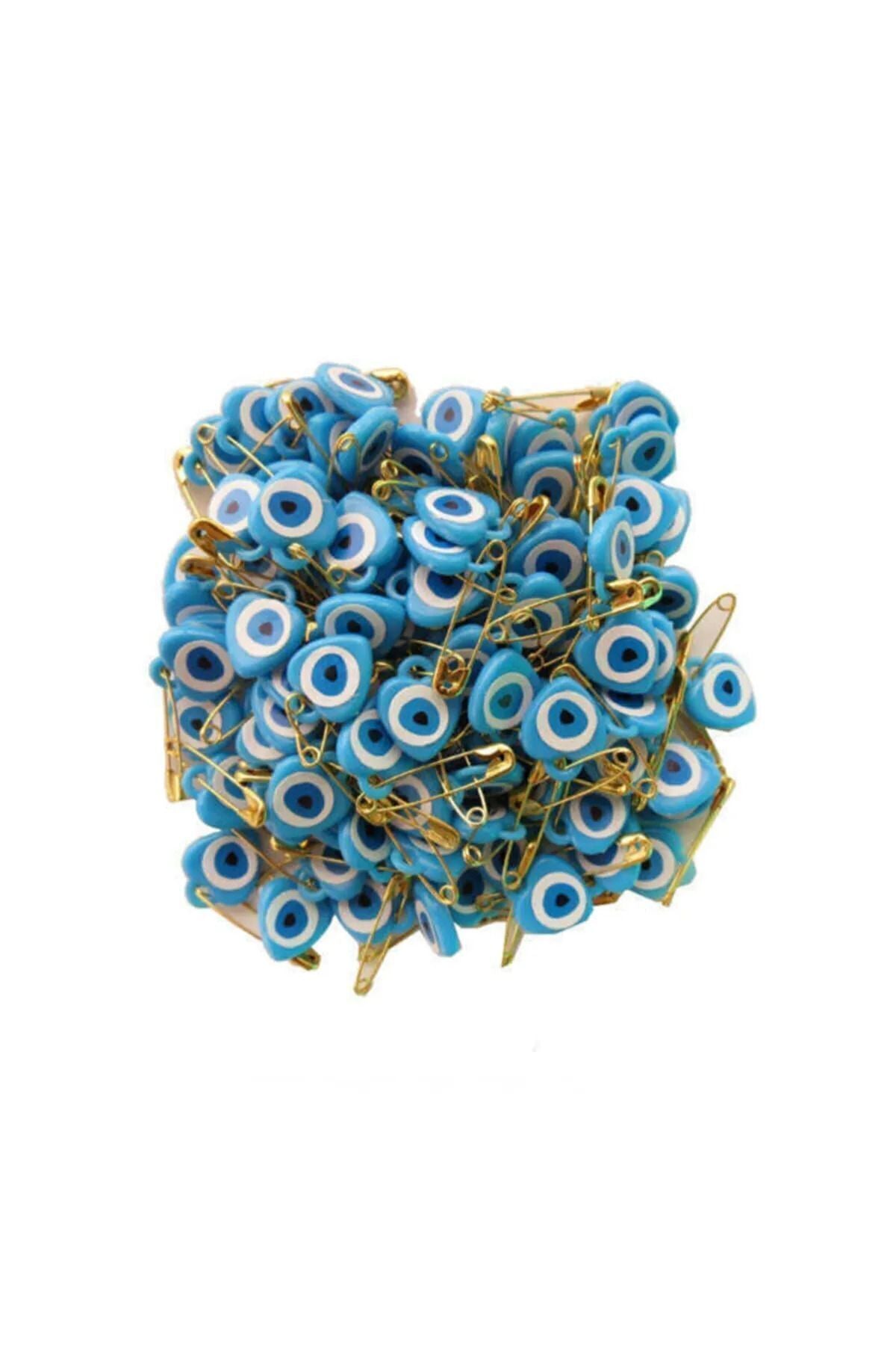 Nazar Boncuğu Sarı Çengelli Iğneli Mavi Boncuk 50 Adet