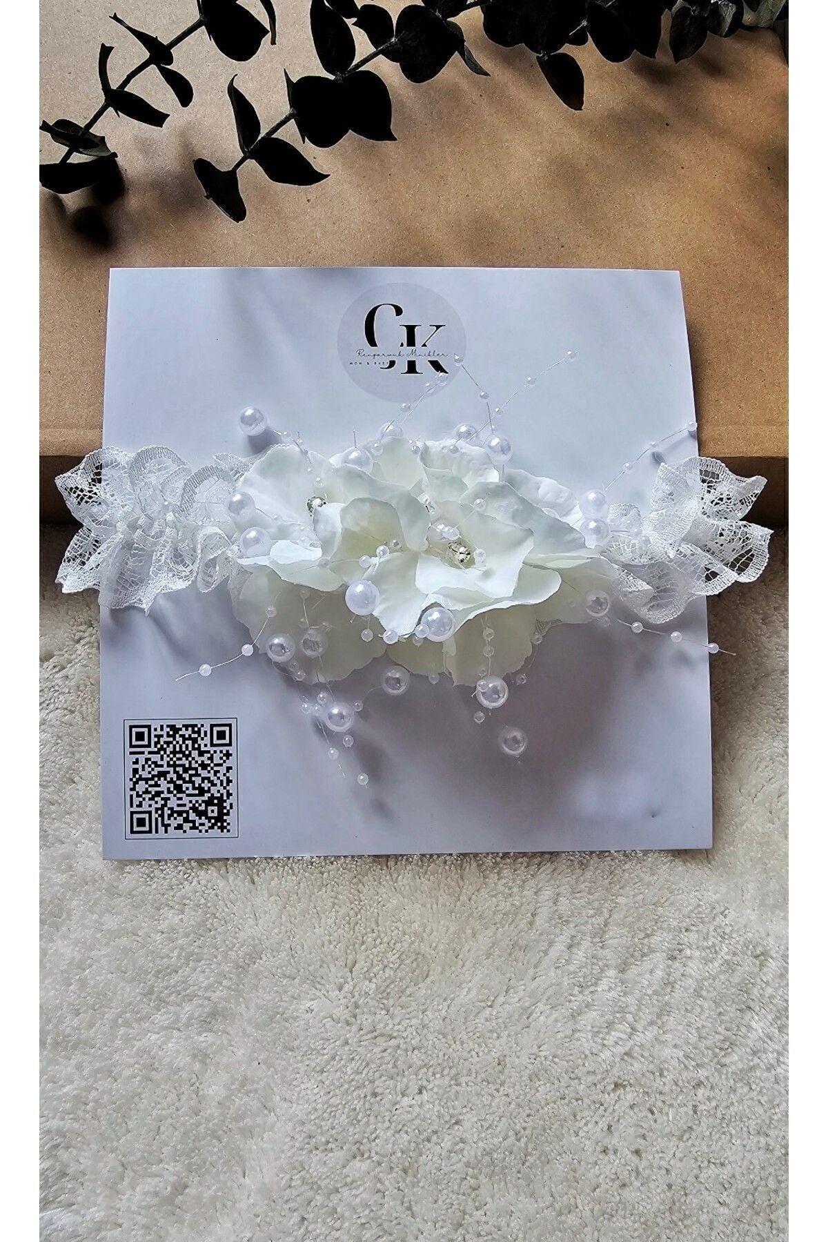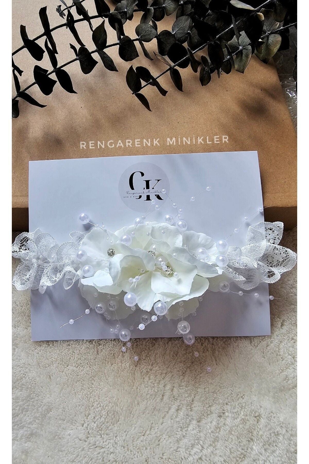 Özel tasarim ortancali inci detayli yenidoğan saçbandı
