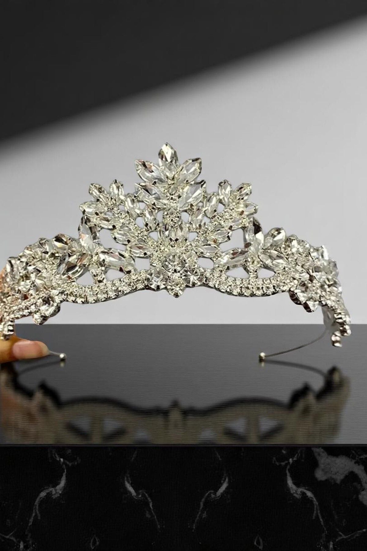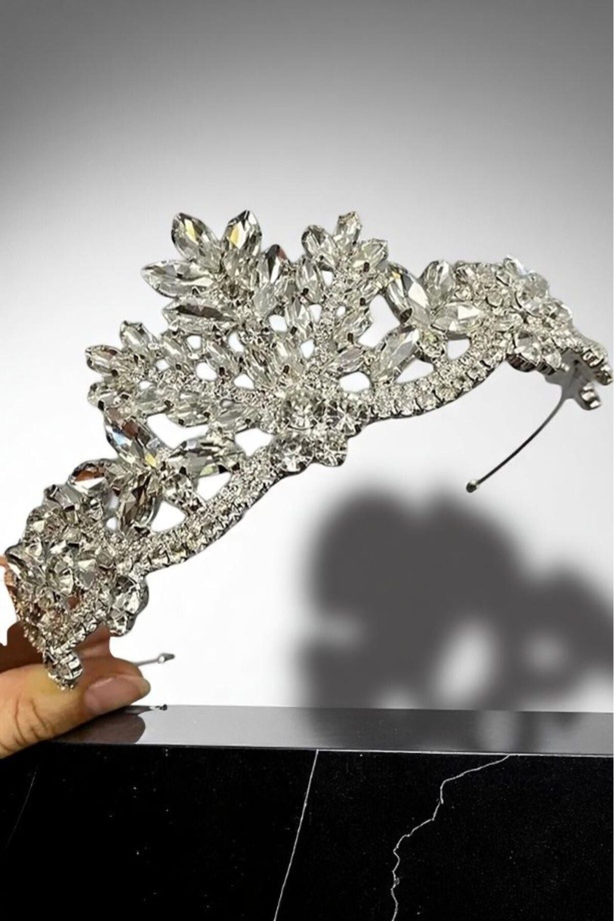 Plevne Model Beyaz Kristalli Gelin Tacı – Şık ve Zarif Özel Tasarım Saç Aksesuarı