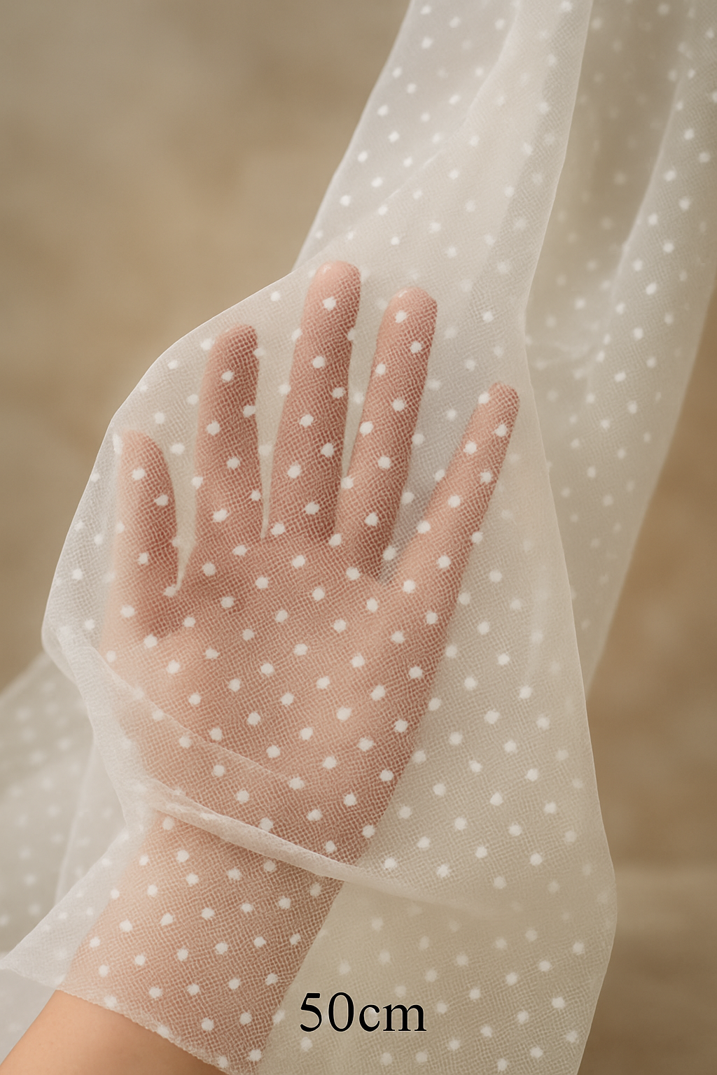 Puantiyeli Beyaz Tül Kumaş – 150cm En, 50cm Boy – Gelin Eldiveni ve Violet Yapımı İçin