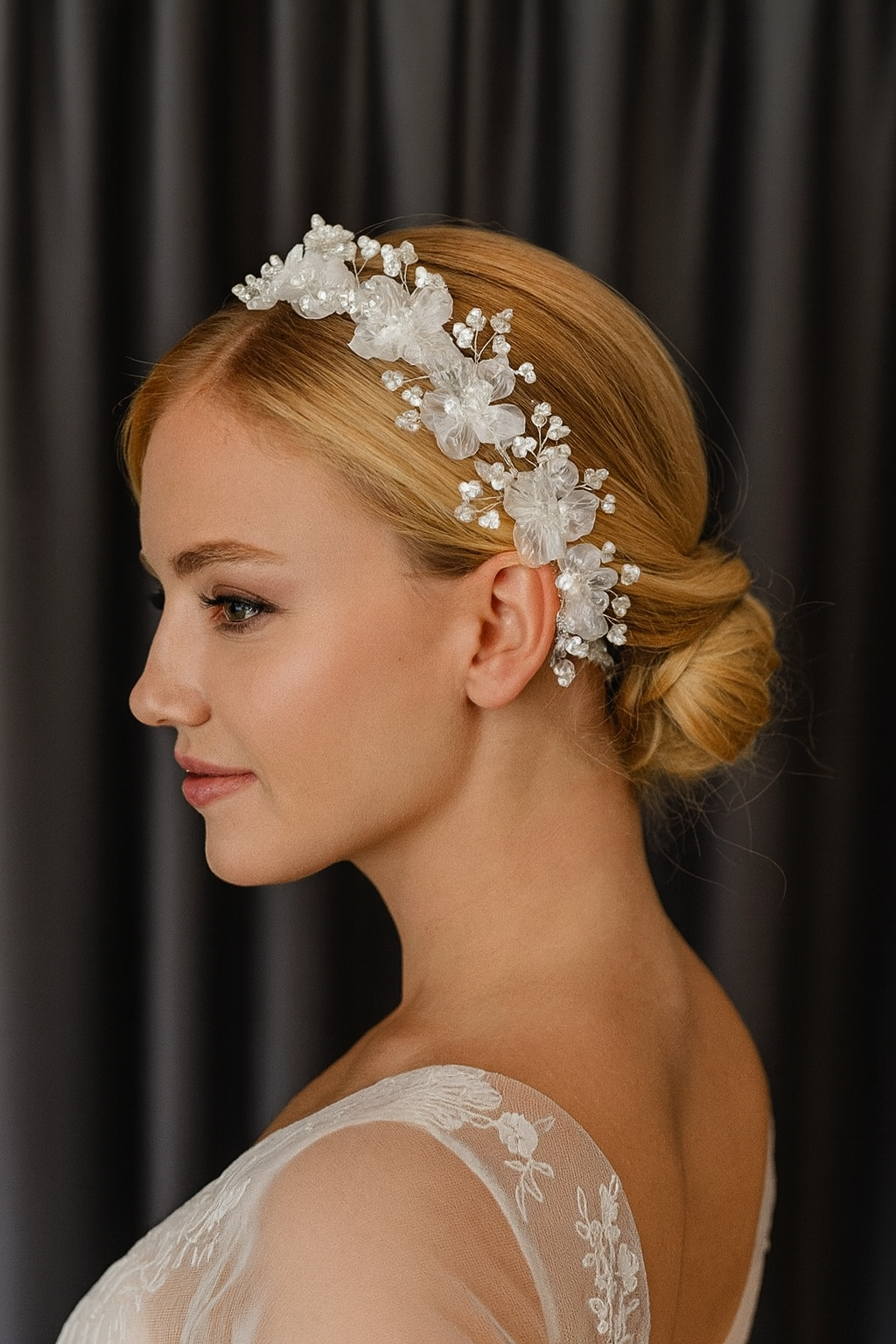 Söz, Nişan, Kına ve Düğün İçin Çiçekli Kristalli Gelin Tacı – Zarif Gelin Saç Aksesuarı