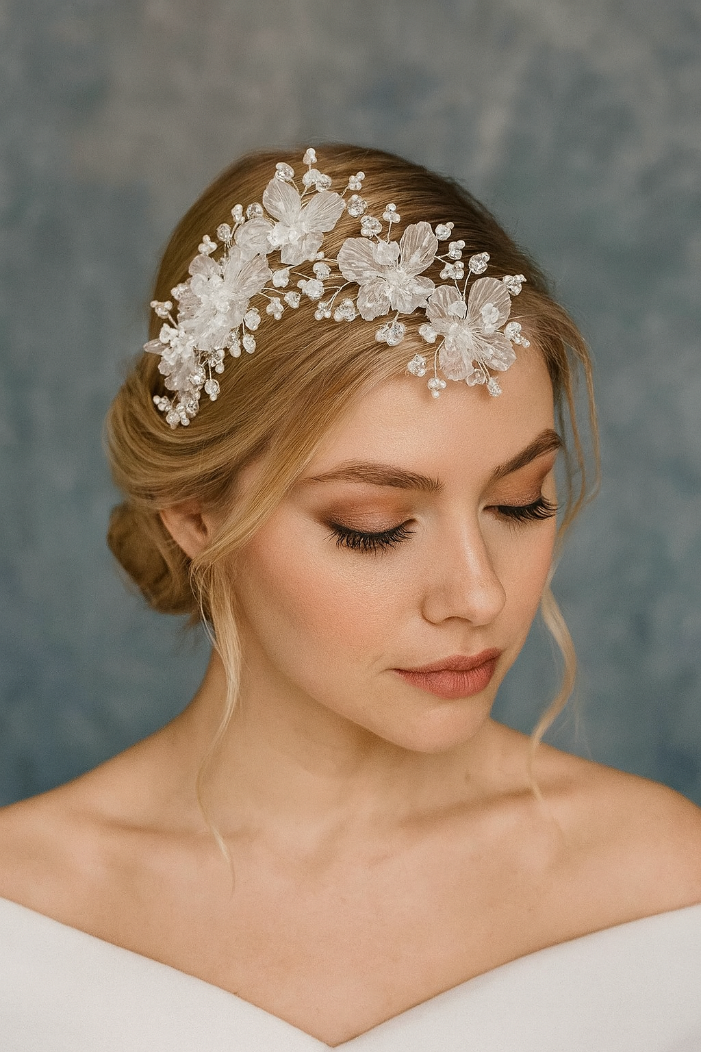 Söz, Nişan, Kına ve Düğün İçin Çiçekli Kristalli Gelin Tacı – Zarif Gelin Saç Aksesuarı