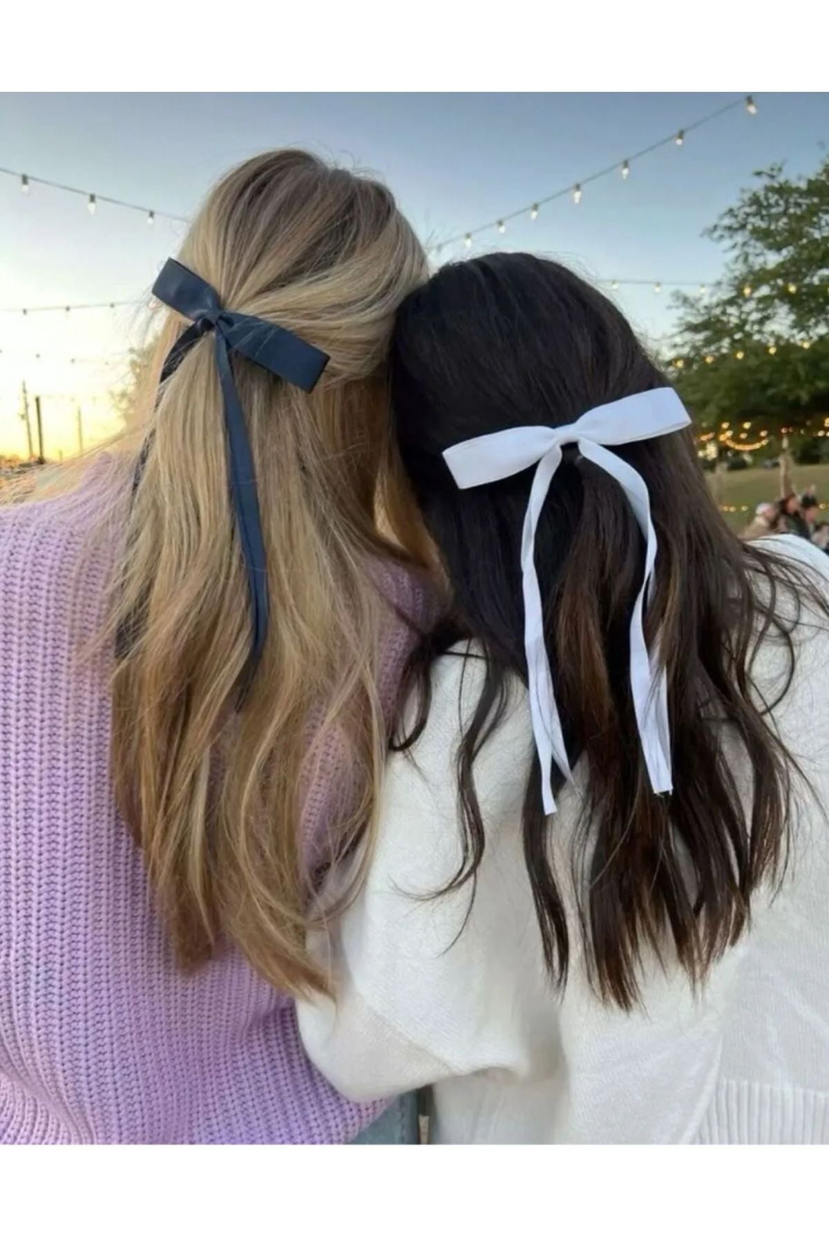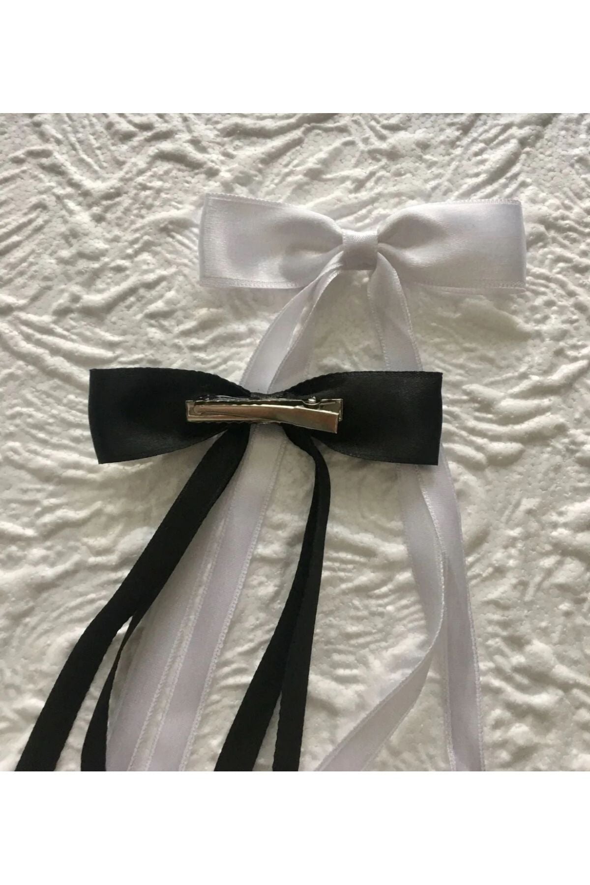 Trend Saten Kurdele Fiyonk Toka Siyah Beyaz Sister Arkadaşlık Toka