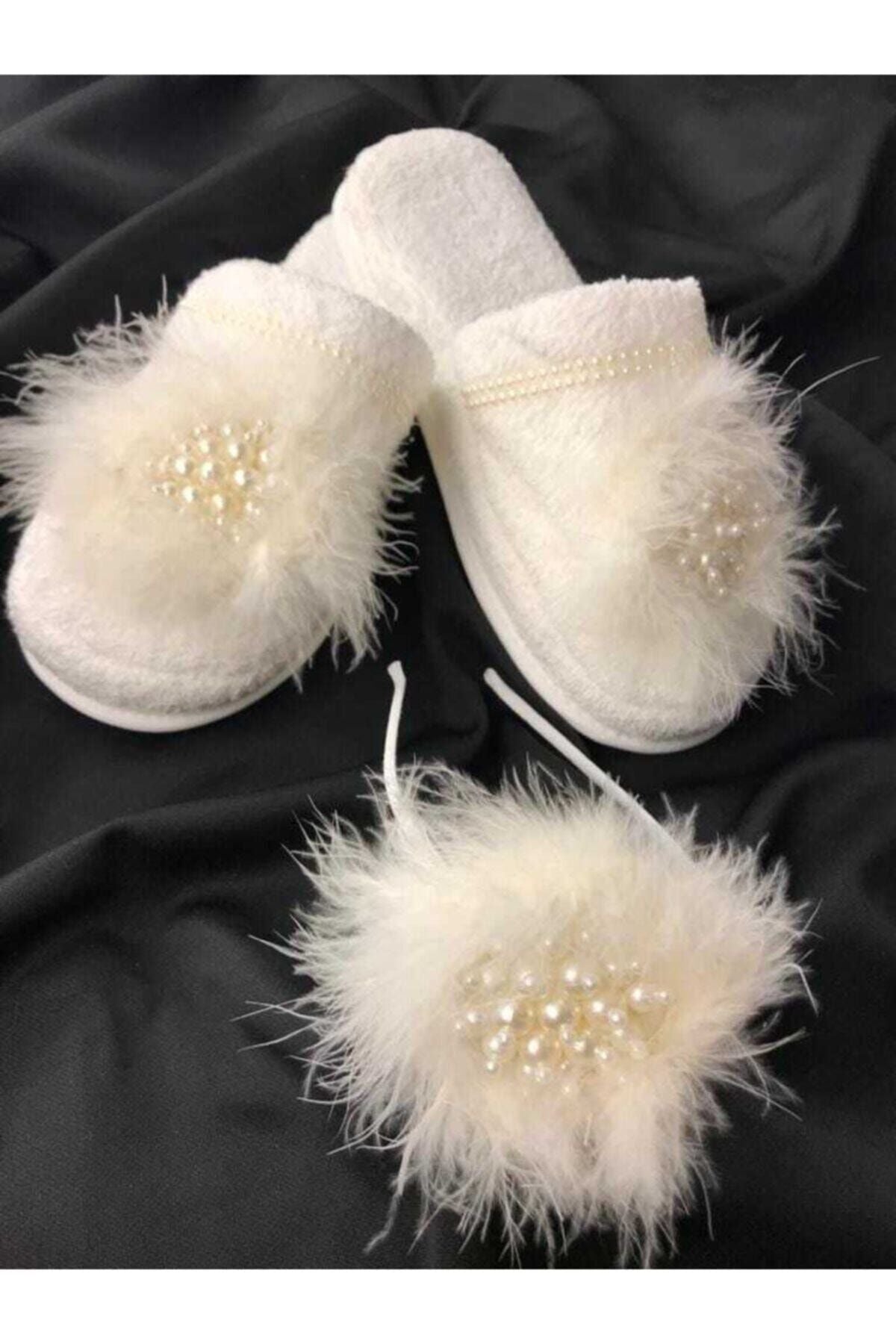Tüylü Incili Lohusa Terlik Taç Set 1083
