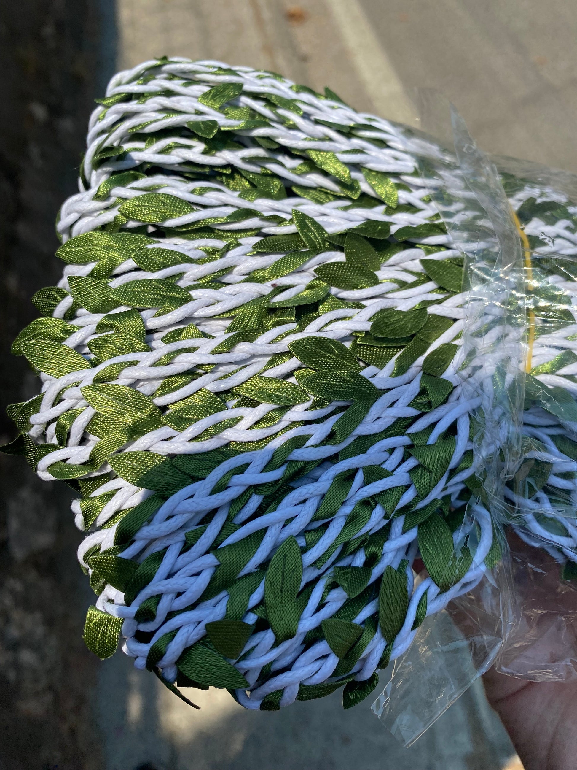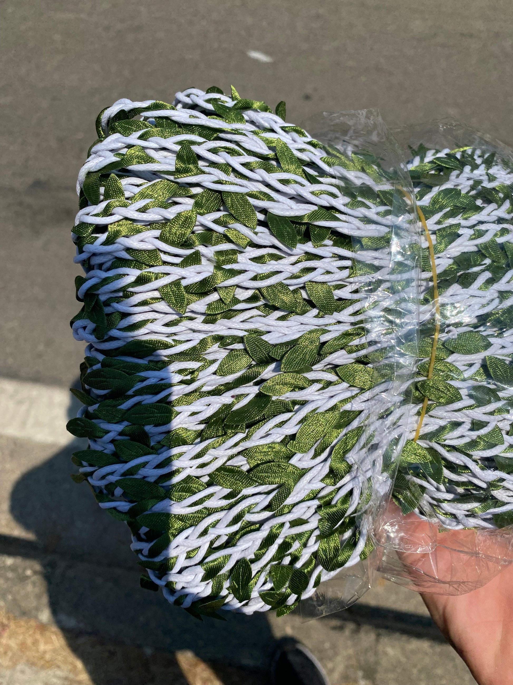 Yeşil Yaprak Desenli Kurdele - 100 Metre | Dekoratif Süsleme Şeridi