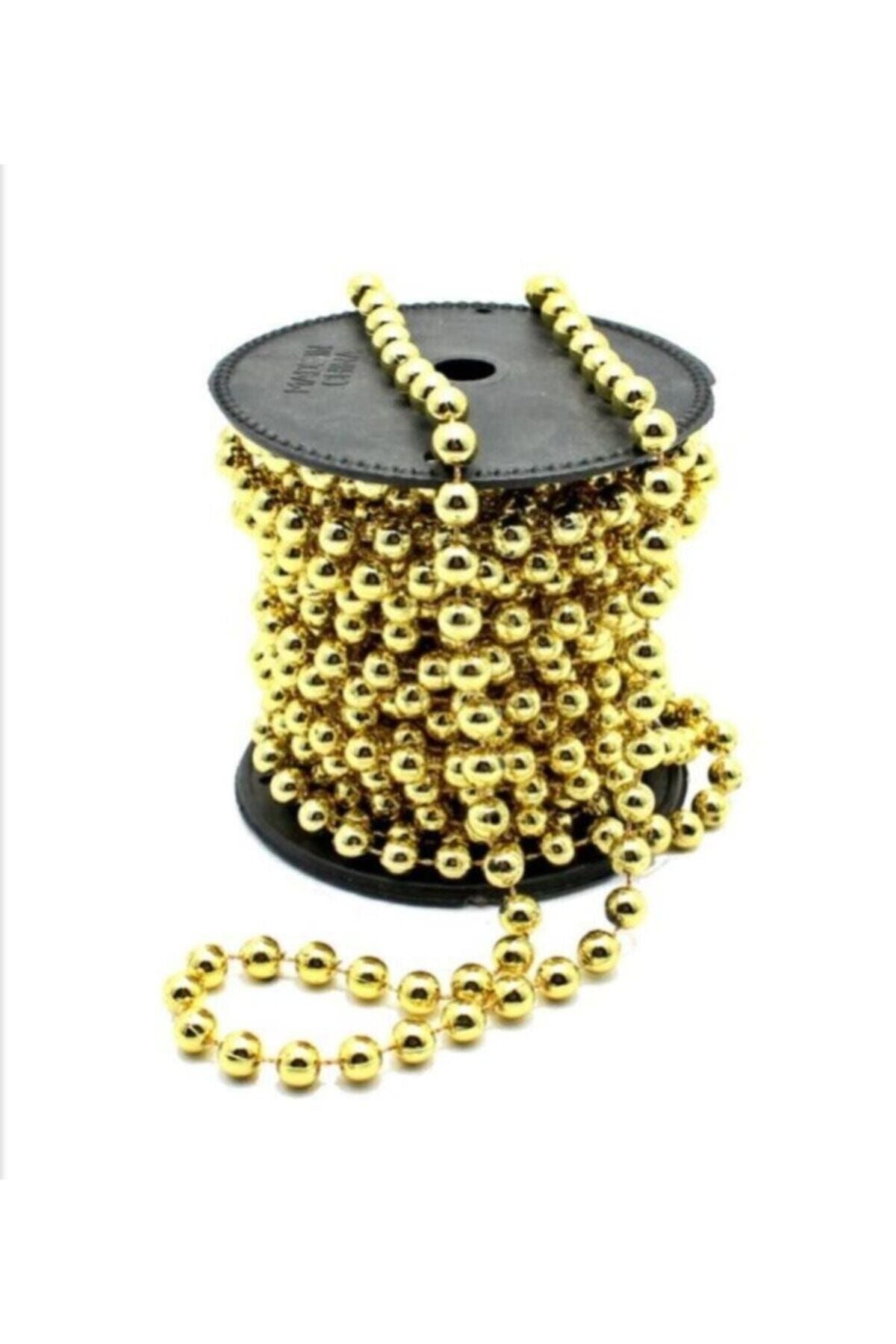 Yılbaşı Gold Zincir Süs 5 Metre Inci Çam Ağacı Süsü Noel Yemek Masası Taşı